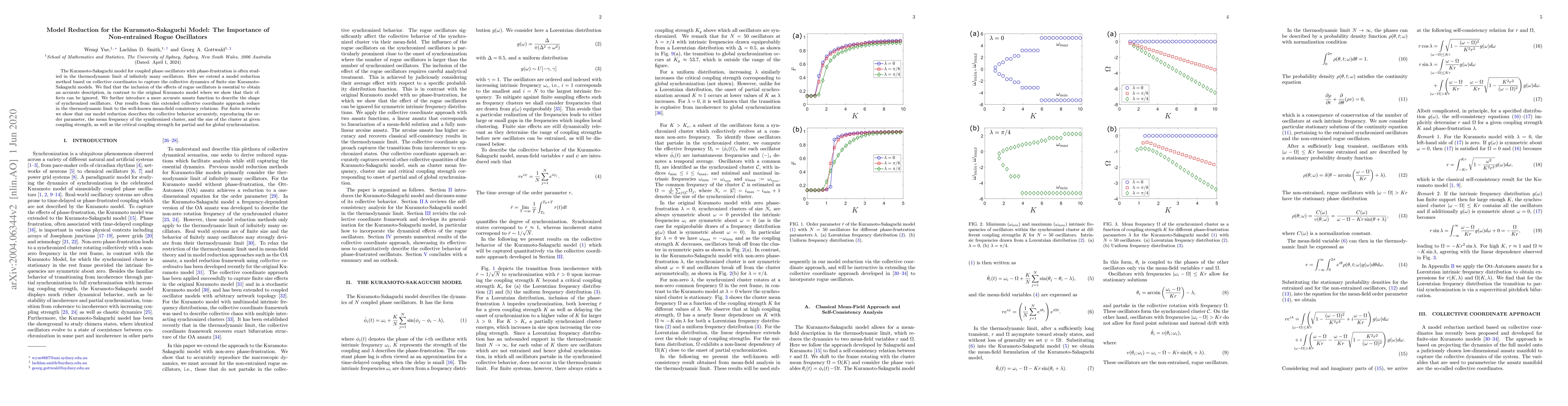 This paper extends a model reduction method for the Kuramoto-Sakaguchi model to finite networks, emphasizing the crucial role of rogue oscillators in accurate collective dynamics description. The new approach accurately reproduces the order parameter and synchronization properties, contrasting with the original Kuramoto model where rogue oscillators' effects are negligible.