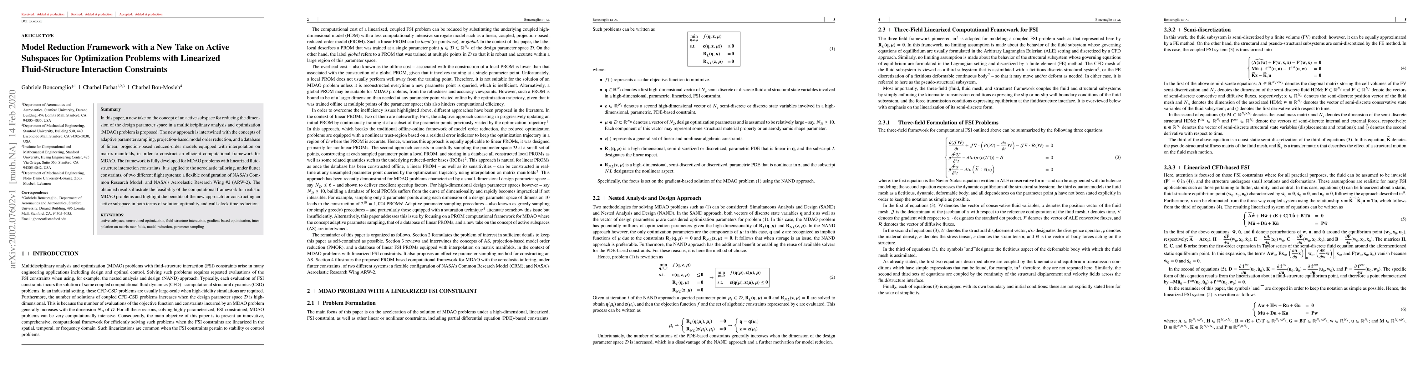 This paper proposes a novel framework for reducing the design parameter space in multidisciplinary analysis and optimization problems, particularly for linearized fluid-structure interaction constraints. The new approach leverages adaptive sampling, projection-based model reduction, and interpolation on matrix manifolds to enhance computational efficiency.