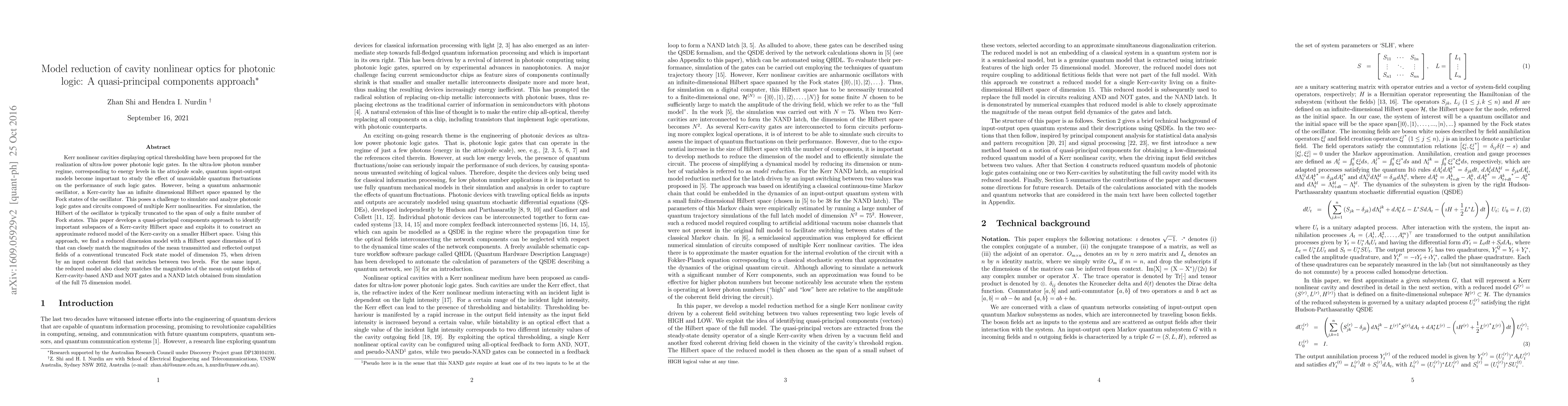 Kerr nonlinear cavities displaying optical thresholding have been proposed for the realization of ultra-low power photonic logic gates. In the ultra-low photon number regime, corresponding to energy levels in the attojoule scale, quantum input-output models become important to study the effect of unavoidable quantum fluctuations on the performance of such logic gates. However, being a quantum anharmonic oscillator, a Kerr-cavity has an infinite dimensional Hilbert space spanned by the Fock states of the oscillator. This poses a challenge to simulate and analyze photonic logic gates and circuits composed of multiple Kerr nonlinearities. For simulation, the Hilbert of the oscillator is typically truncated to the span of only a finite number of Fock states. This paper develops a quasi-principal components approach to identify important subspaces of a Kerr-cavity Hilbert space and exploits it to construct an approximate reduced model of the Kerr-cavity on a smaller Hilbert space. Using this approach, we find a reduced dimension model with a Hilbert space dimension of 15 that can closely match the magnitudes of the mean transmitted and reflected output fields of a conventional truncated Fock state model of dimension 75, when driven by an input coherent field that switches between two levels. For the same input, the reduced model also closely matches the magnitudes of the mean output fields of Kerr-cavity-based AND and NOT gates and a NAND latch obtained from simulation of the full 75 dimension model.