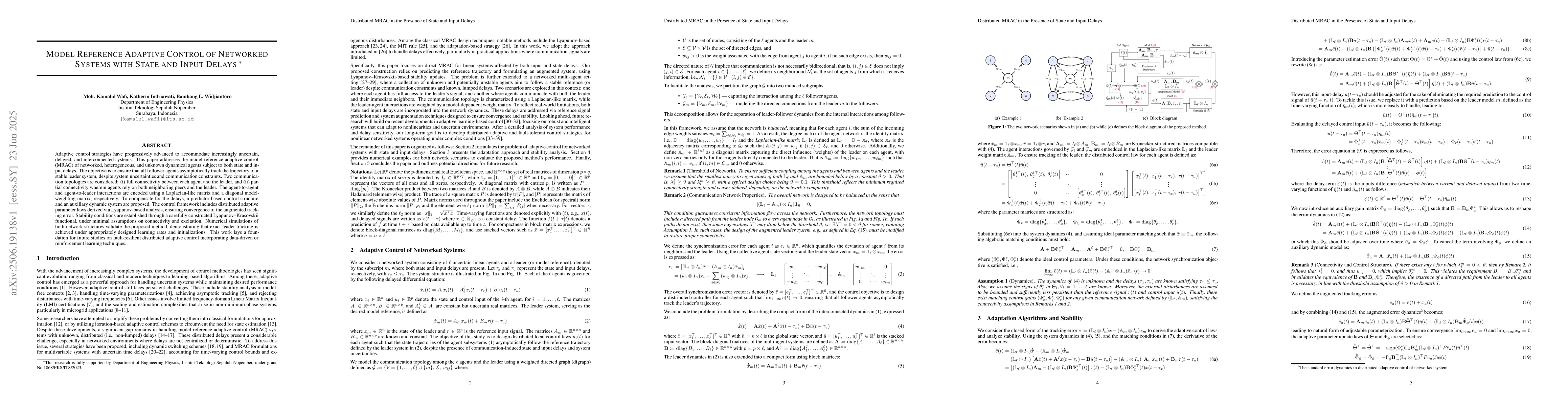 Adaptive control strategies have progressively advanced to accommodate increasingly uncertain, delayed, and interconnected systems. This paper addresses the model reference adaptive control (MRAC) of networked, heterogeneous, and unknown dynamical agents subject to both state and input delays. The objective is to ensure that all follower agents asymptotically track the trajectory of a stable leader system, despite system uncertainties and communication constraints. Two communication topologies are considered, full connectivity between each agent and the leader, and partial connectivity wherein agents rely on both neighboring peers and the leader. The agent-to-agent and agent-to-leader interactions are encoded using a Laplacian-like matrix and a diagonal model-weighting matrix, respectively. To compensate for the delays, a predictor-based control structure and an auxiliary dynamic system are proposed. The control framework includes distributed adaptive parameter laws derived via Lyapunov-based analysis, ensuring convergence of the augmented tracking error. Stability conditions are established through a carefully constructed Lyapunov Krasovskii functional, under minimal assumptions on connectivity and excitation. Numerical simulations of both network structures validate the proposed method, demonstrating that exact leader tracking is achieved under appropriately designed learning rates and initializations. This work lays a foundation for future studies on fault-resilient distributed adaptive control incorporating data-driven or reinforcement learning techniques.