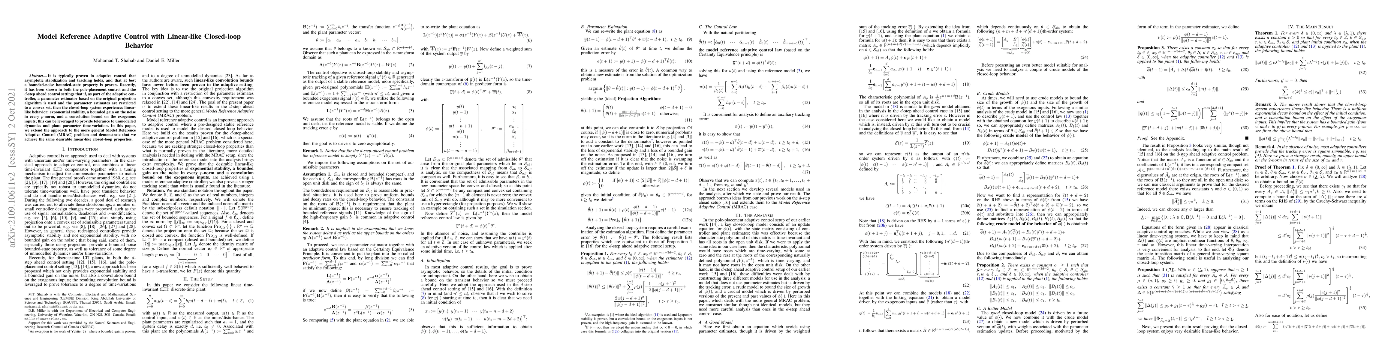 This paper extends the use of a parameter estimator based on the original projection algorithm within Model Reference Adaptive Control (MRAC) to achieve linear-like closed-loop behavior, including exponential stability and bounded noise effects, thereby providing robustness against unmodelled dynamics and plant parameter variations.