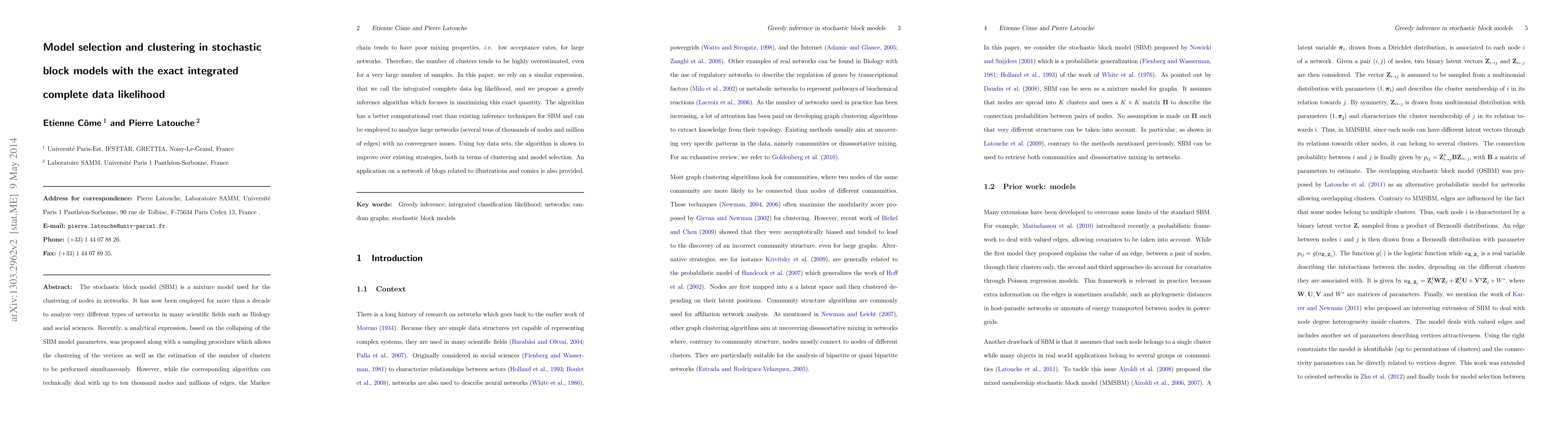 This paper proposes an analytical expression for the integrated complete data log likelihood in stochastic block models, enabling exact inference without approximations. It introduces an efficient algorithm for clustering nodes and estimating the number of clusters, outperforming existing methods in computational cost and applicable to large-scale networks.