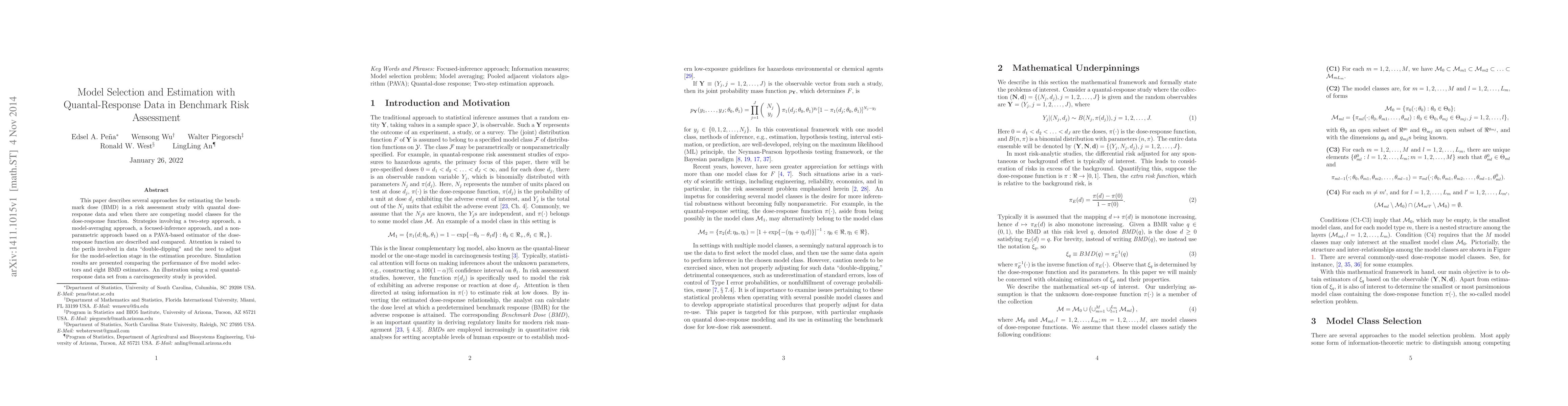 This paper explores various methods for estimating the benchmark dose (BMD) in risk assessment with quantal-response data, comparing strategies like two-step, model-averaging, focused-inference, and nonparametric approaches. It emphasizes the importance of adjusting for model selection and presents simulation results and a real-world application to demonstrate performance.