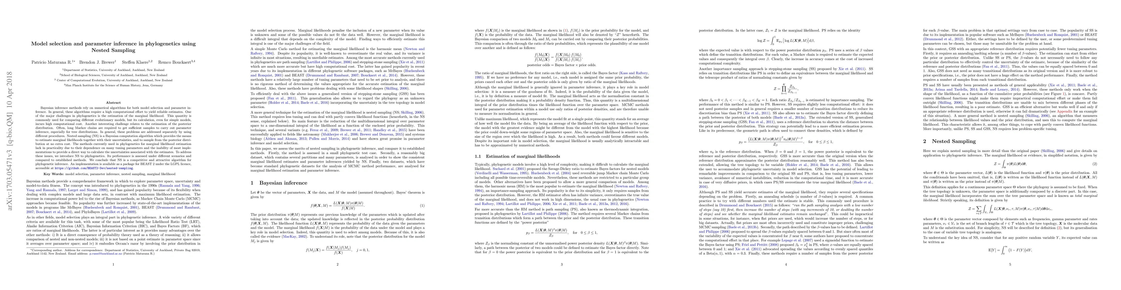 This paper introduces Nested Sampling (NS) for Bayesian inference in phylogenetics, addressing the high computational costs of estimating marginal likelihoods and posterior distributions. NS is shown to be a competitive and practical alternative to existing methods, offering accurate estimates without extra computational effort.