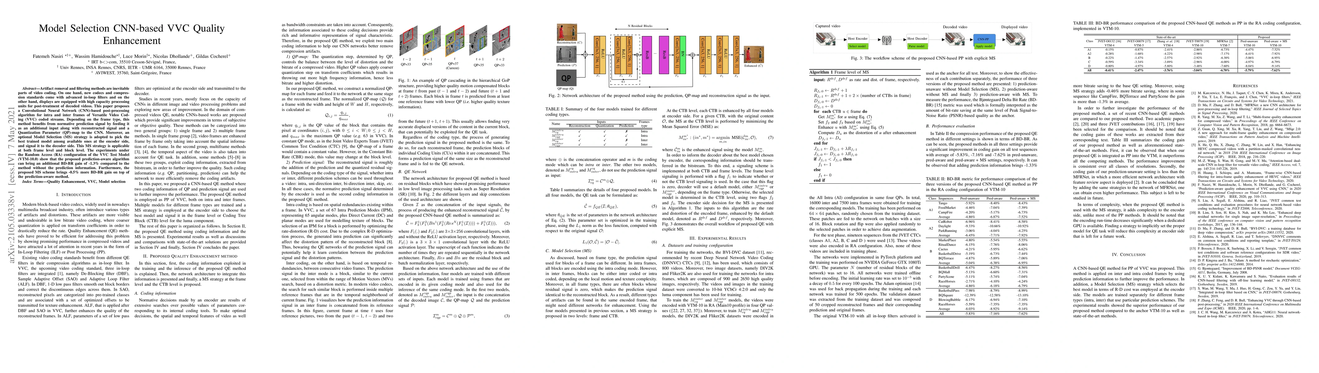 This paper proposes a CNN-based post-processing algorithm for VVC video coding that enhances quality through artifact removal, leveraging prediction signals and a Model Selection strategy for optimal model choice, achieving a BD-BR gain of -1.8% overall.