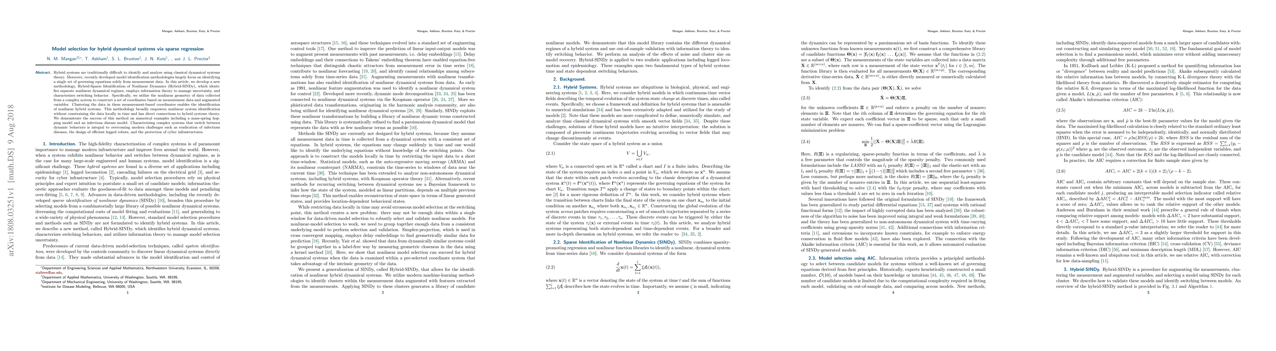 This paper introduces Hybrid-SINDy, a novel methodology for identifying separate nonlinear dynamical regimes in hybrid systems, leveraging sparse regression and clustering based on measurement data. The method is demonstrated to effectively characterize switching behavior in complex systems, with applications in disease modeling and robotics.