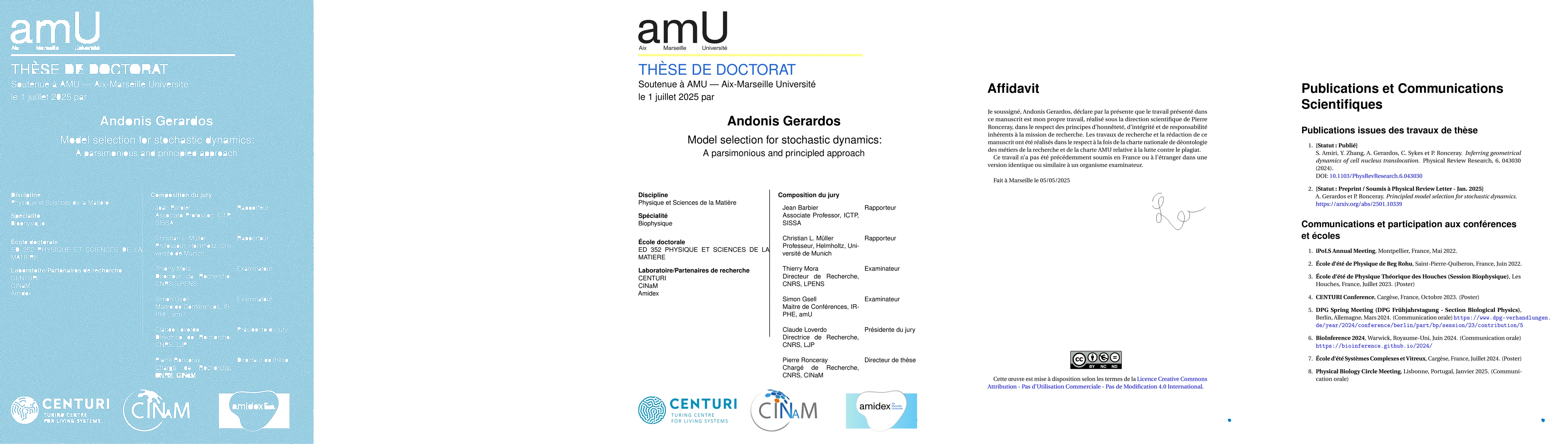 This thesis focuses on the discovery of stochastic differential equations (SDEs) and stochastic partial differential equations (SPDEs) from noisy and discrete time series. A major challenge is selecting the simplest possible correct model from vast libraries of candidate models, where standard information criteria (AIC, BIC) are often limited. We introduce PASTIS (Parsimonious Stochastic Inference), a new information criterion derived from extreme value theory. Its penalty term, $n_\mathcal{B} \ln(n_0/p)$, explicitly incorporates the size of the initial library of candidate parameters ($n_0$), the number of parameters in the considered model ($n_\mathcal{B}$), and a significance threshold ($p$). This significance threshold represents the probability of selecting a model containing more parameters than necessary when comparing many models. Benchmarks on various systems (Lorenz, Ornstein-Uhlenbeck, Lotka-Volterra for SDEs; Gray-Scott for SPDEs) demonstrate that PASTIS outperforms AIC, BIC, cross-validation (CV), and SINDy (a competing method) in terms of exact model identification and predictive capability. Furthermore, real-world data can be subject to large sampling intervals ($\Delta t$) or measurement noise ($\sigma$), which can impair model learning and selection capabilities. To address this, we have developed robust variants of PASTIS, PASTIS-$\Delta t$ and PASTIS-$\sigma$, thus extending the applicability of the approach to imperfect experimental data. PASTIS thus provides a statistically grounded, validated, and practical methodological framework for discovering simple models for processes with stochastic dynamics.
