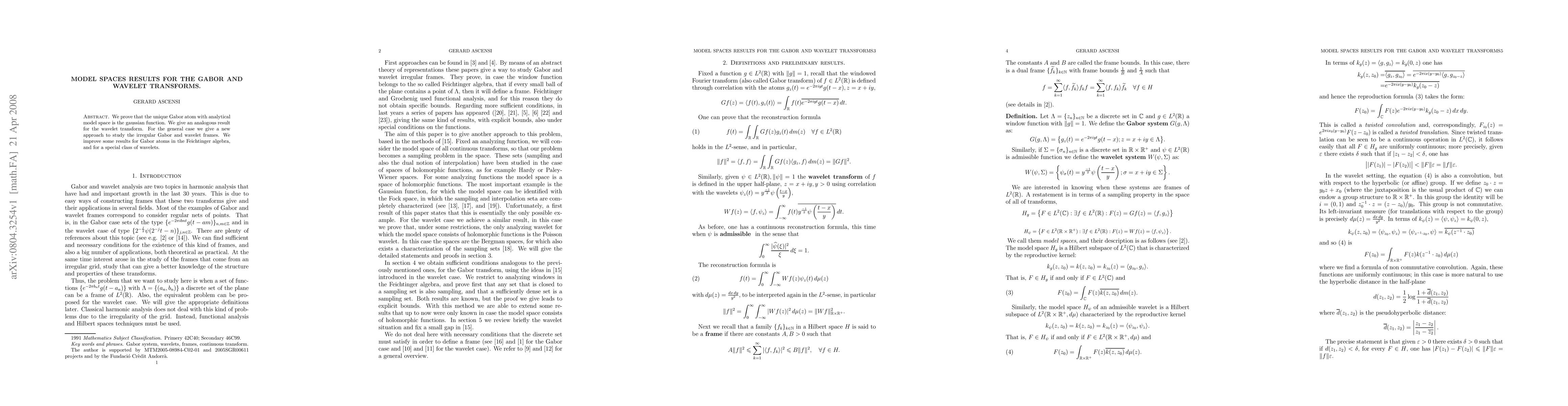 This paper proves that the Gaussian function is the unique Gabor atom with an analytical model space and provides a similar result for the wavelet transform. It also introduces a new method to study irregular Gabor and wavelet frames and enhances results for Gabor atoms in the Feichtinger algebra and for a specific class of wavelets.