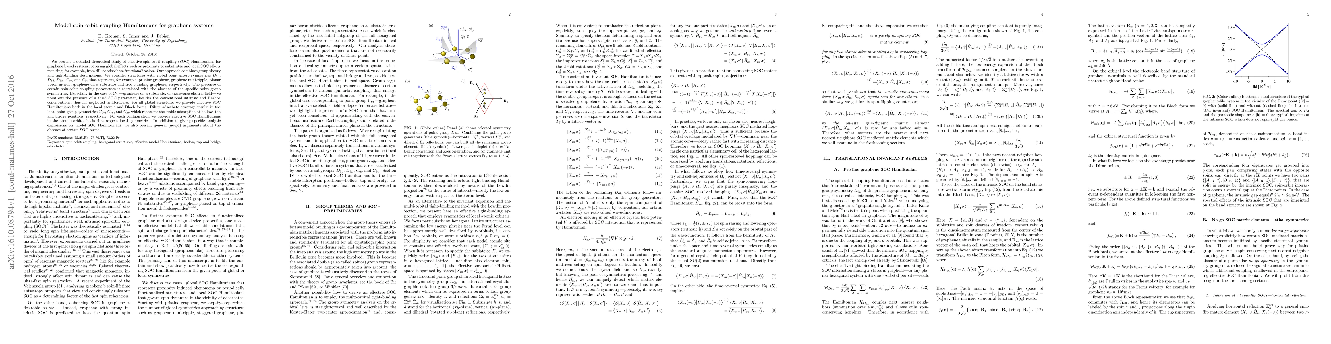 This paper presents a theoretical study of effective spin-orbit coupling Hamiltonians for various graphene systems, combining group theory and tight-binding methods. It identifies new spin-orbit coupling parameters for systems like graphene on substrates, and provides detailed Hamiltonians for both global and local symmetries.