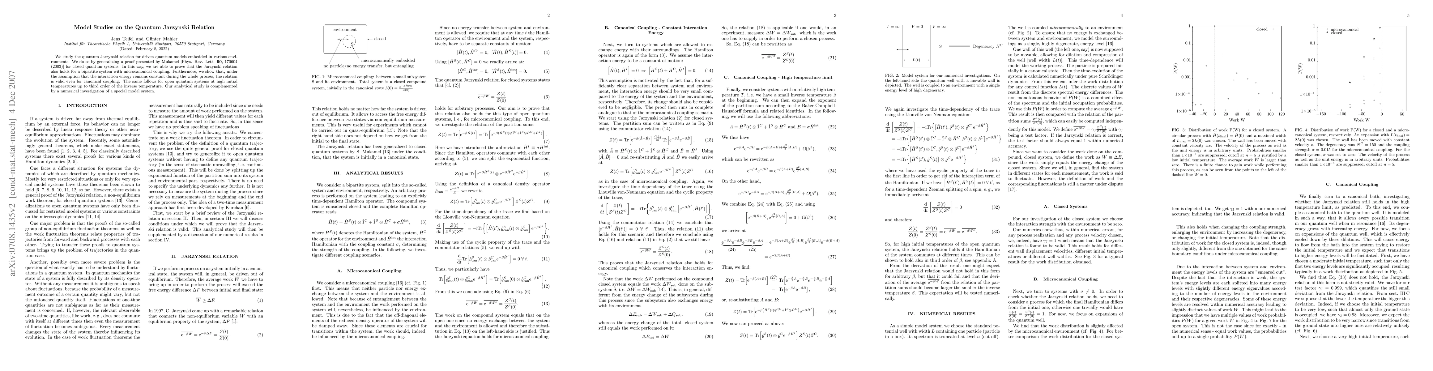 We study the quantum Jarzynski relation for driven quantum models embedded in various environments. We do so by generalizing a proof presented by Mukamel [Phys. Rev. Lett 90, 170604 (2003)] for closed quantum systems. In this way, we are able to prove that the Jarzynski relation also holds for a bipartite system with microcanonical coupling. Furthermore, we show that, under the assumption that the interaction energy remains constant during the whole process, the relation is valid even for canonical coupling. The same follows for open quantum systems at high initial temperatures up to third order of the inverse temperature. Our analytical study is complemented by a numerical investigation of a special model system.