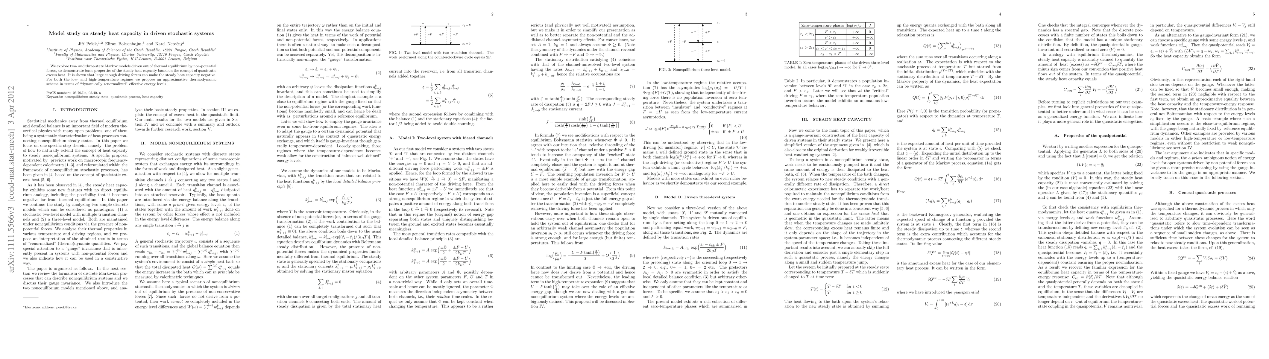 We explore two- and three-state Markov models driven out of thermal equilibrium by non-potential forces to demonstrate basic properties of the steady heat capacity based on the concept of quasistatic excess heat. It is shown that large enough driving forces can make the steady heat capacity negative. For both the low- and high-temperature regimes we propose an approximative thermodynamic scheme in terms of "dynamically renormalized" effective energy levels.