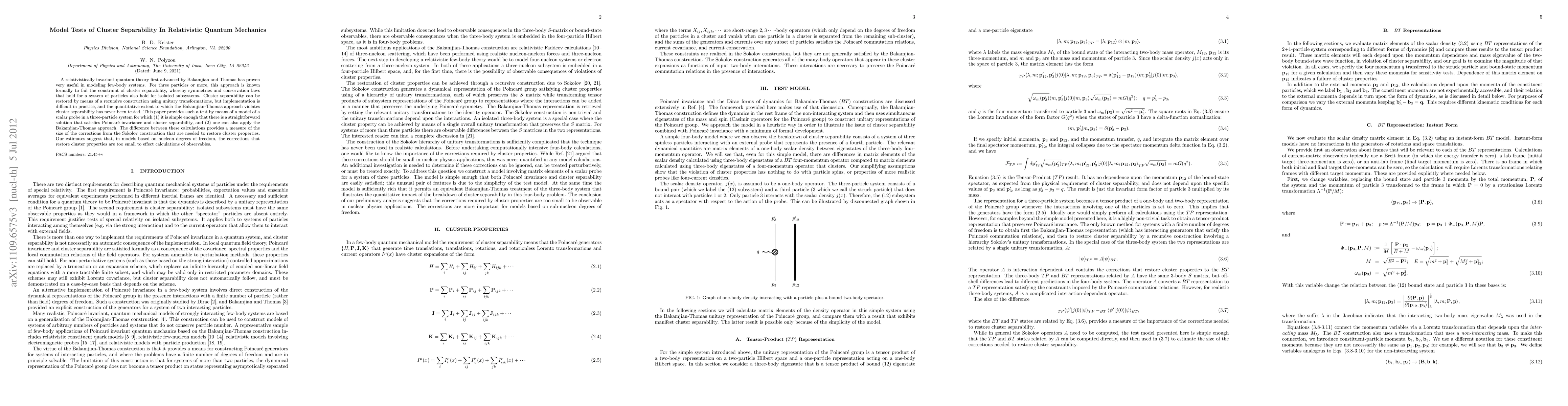 This paper tests the extent to which the Bakamjian-Thomas approach violates cluster separability in relativistic quantum mechanics using a simple three-particle system. The results suggest that the necessary corrections to restore cluster properties are negligible for nucleon-based models.