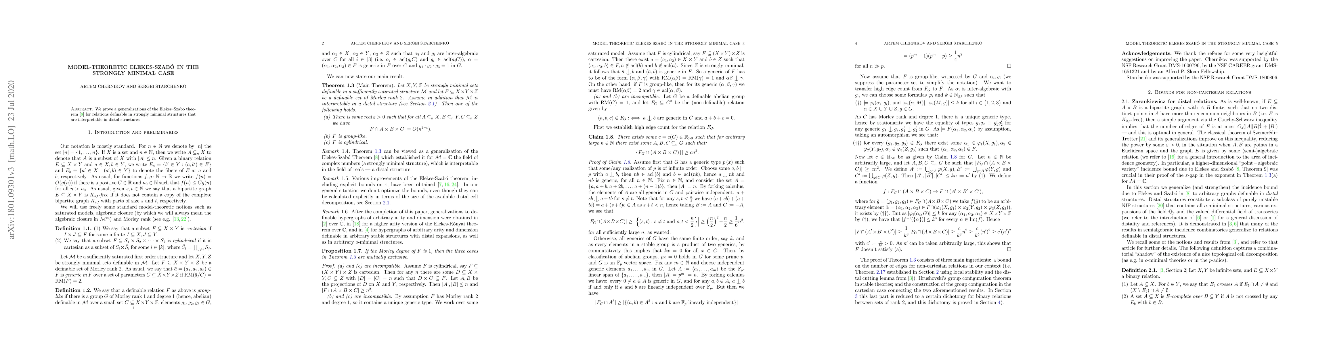 This paper generalizes the Elekes-Szab'o theorem to strongly minimal structures interpretable in distal structures, proving a key result for definable relations.