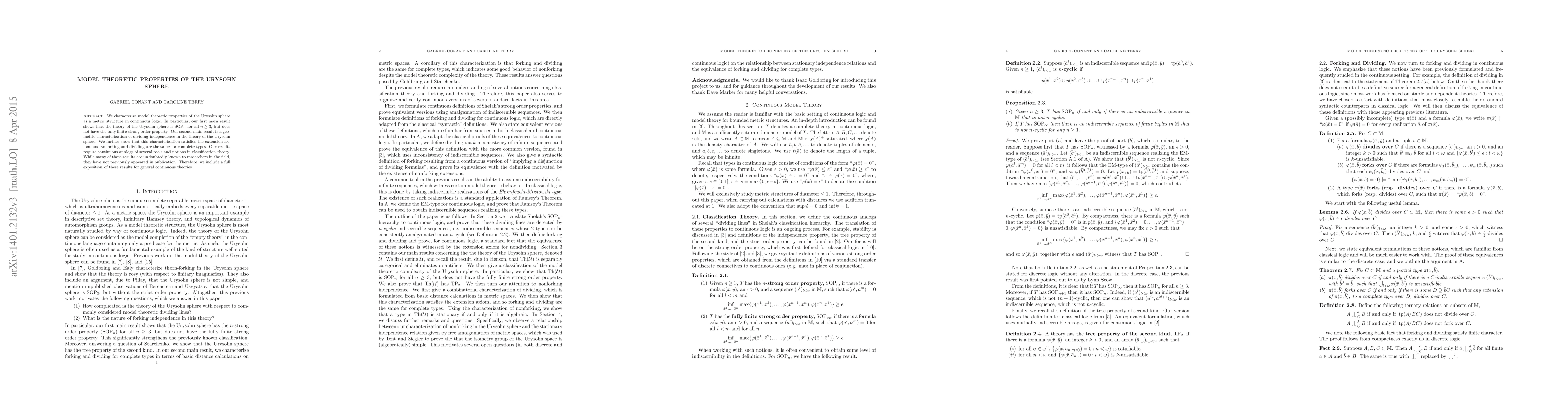 This paper characterizes model-theoretic properties of the Urysohn sphere in continuous logic, proving that its theory has the SOP$_n$ property for all $n\geq 3$ but lacks the fully finite strong order property. It also provides a geometric characterization of dividing independence, showing that forking and dividing coincide for complete types.