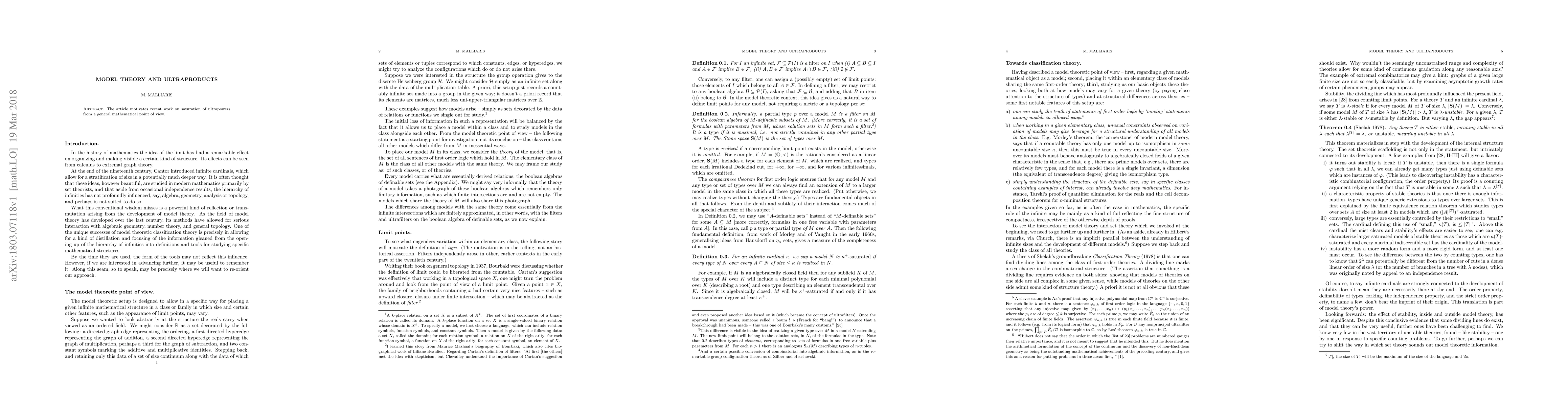 This paper explores the connection between model theory and ultraproducts, a mathematical concept used to study infinite structures, with implications for understanding the properties of these structures.