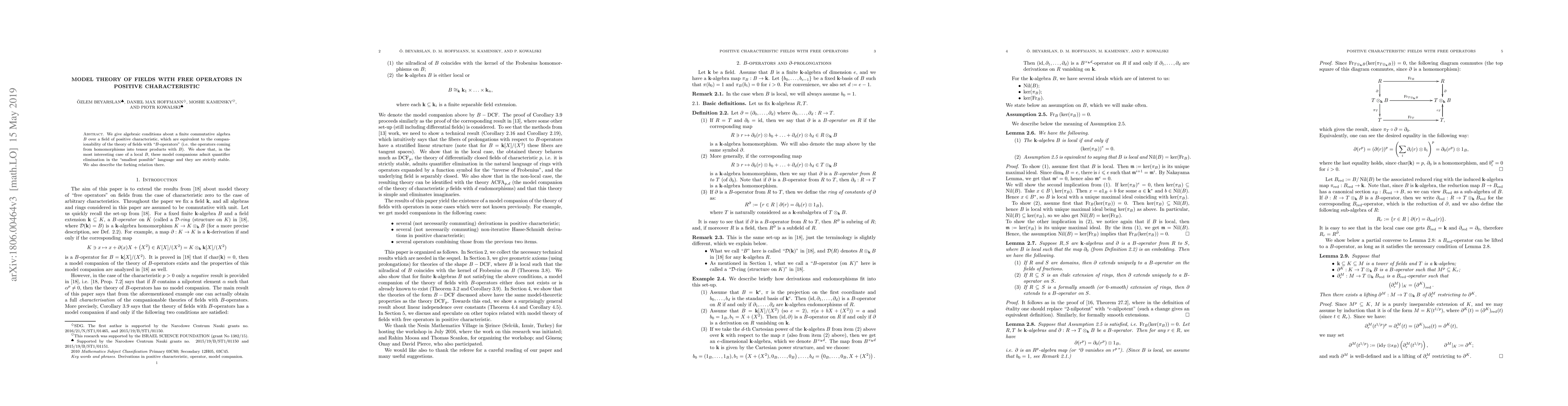 This paper establishes algebraic conditions for the companionability of fields with "$B$-operators" in positive characteristic, proving that these model companions admit quantifier elimination and are strictly stable, particularly when $B$ is local. The forking relation is also described.