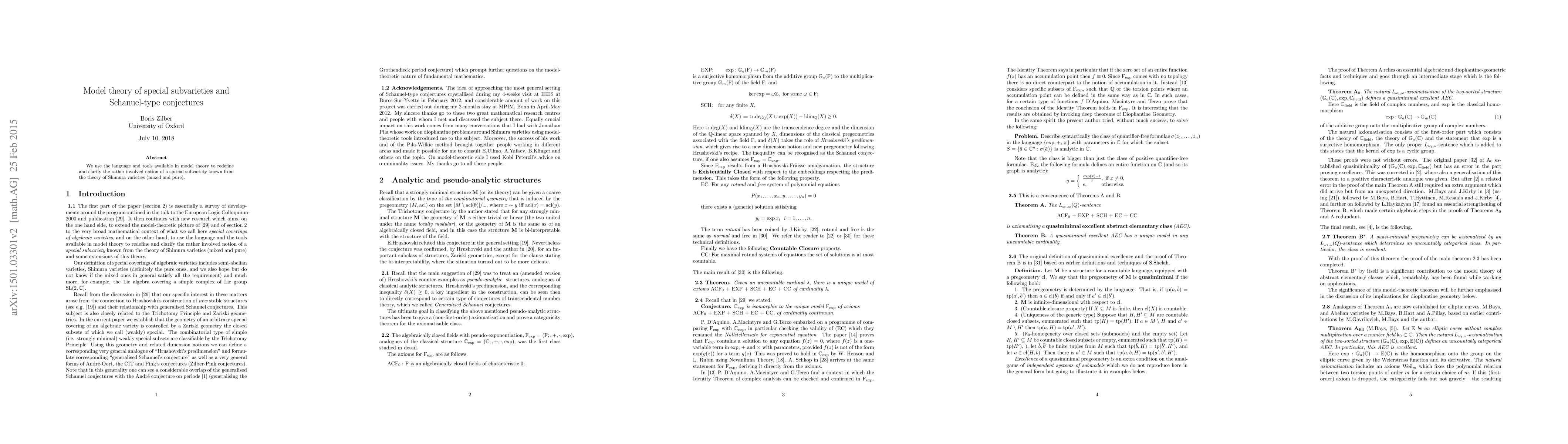 We use the language and tools available in model theory to redefine and clarify the rather involved notion of a {\em special subvariety} known from the theory of Shimura varieties (mixed and pure).