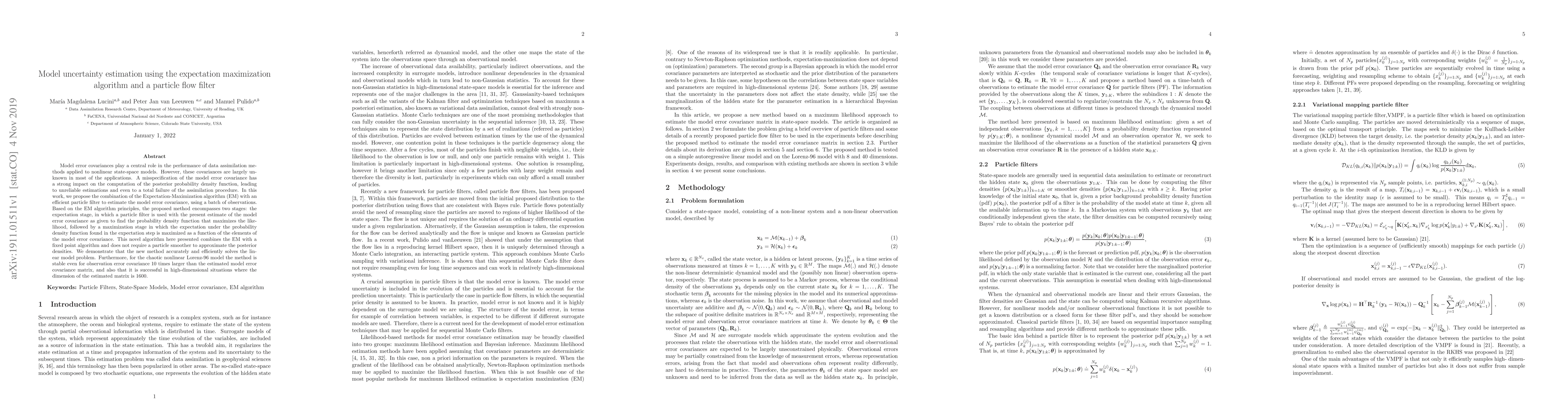 This paper proposes a novel method combining the Expectation-Maximization algorithm with a particle filter to estimate model error covariances in nonlinear state-space models. The method efficiently handles high-dimensional problems and demonstrates stability and accuracy, even with large observation error covariances.