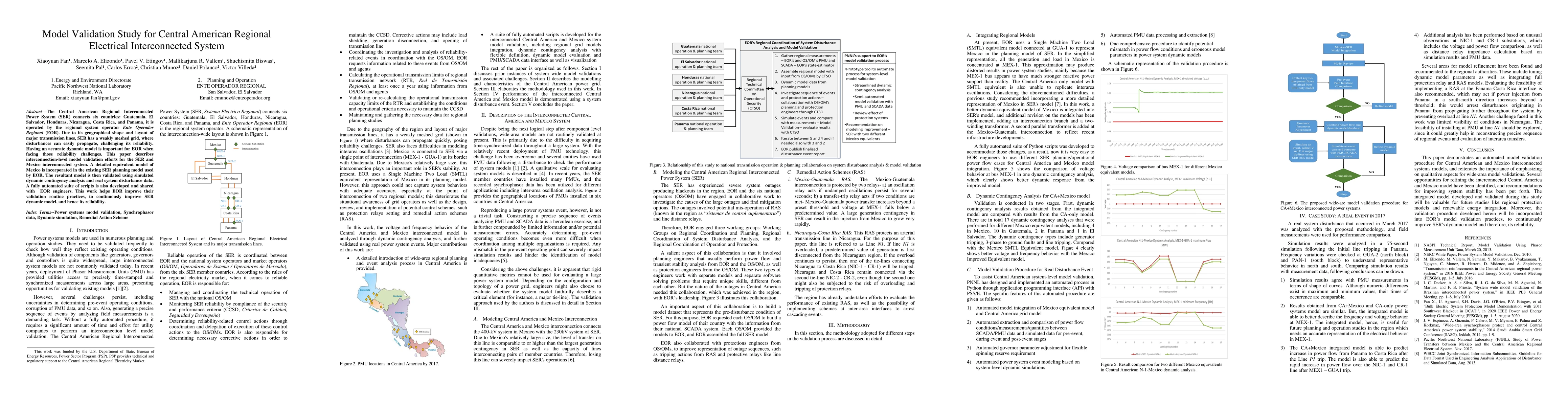 The Central American Regional Interconnected Power System (SER) connects six countries: Guatemala, El Salvador, Honduras, Nicaragua, Costa Rica, and Panama, it is operated by the regional system operator Ente Operador Regional (EOR). Due to its geographical shape and layout of major transmission lines, SER has a weakly meshed grid, where disturbances can easily propagate, challenging its reliability. Having an accurate dynamic model is important for EOR when facing those reliability challenges. This paper describes interconnection-level model validation efforts for the SER and Mexico interconnected system. A detailed equivalent model of Mexico is incorporated in the existing SER planning model used by EOR. The resultant model is then validated using simulated dynamic contingency analysis and real system disturbance data. A fully automated suite of scripts is also developed and shared with EOR engineers. This work helps EOR improve their validation routine practices, to continuously improve SER dynamic model, and hence its reliability.