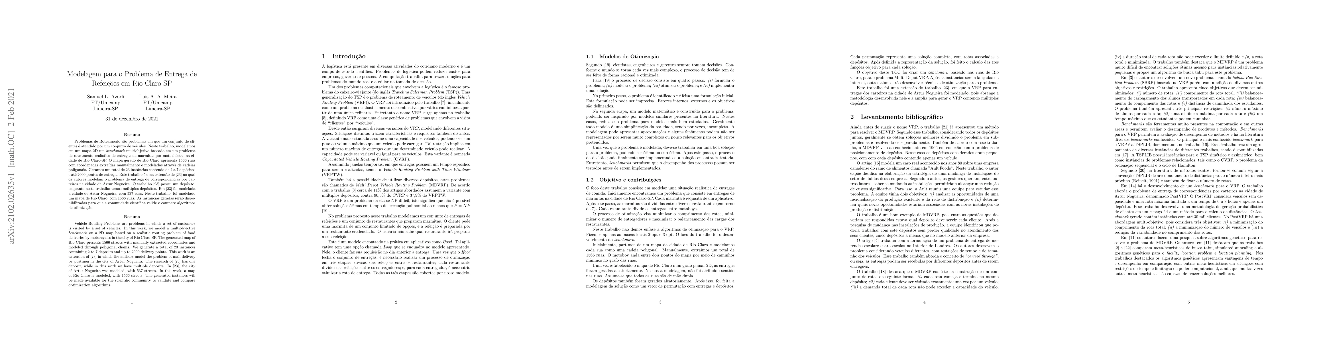 Researchers created a model for optimizing food delivery routes in Rio Claro-SP, generating 23 instances with 2 to 7 deposits and up to 2000 delivery points on a 1566-street map.