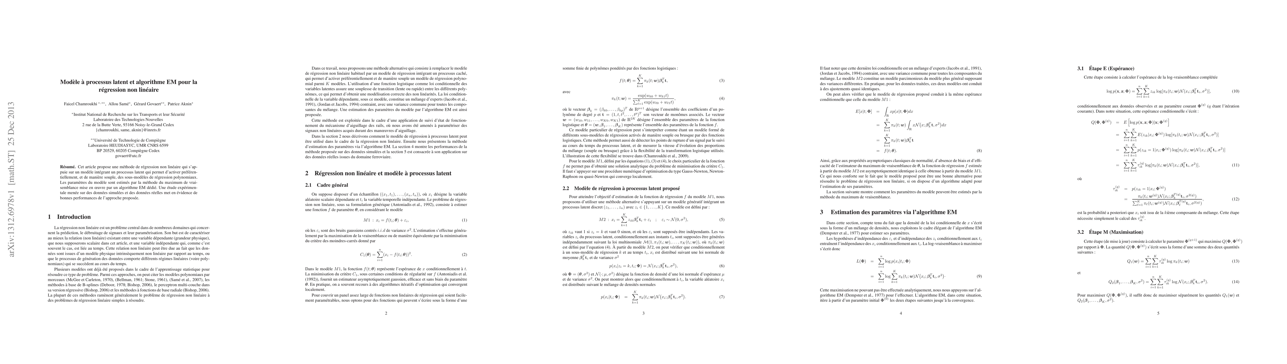 This paper introduces a nonlinear regression model with latent processes that can smoothly activate different polynomial regression models. Parameters are estimated using a specialized EM algorithm, and experimental results show the method's effectiveness on both simulated and real datasets.