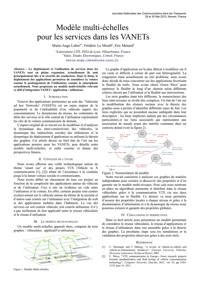 Service deployment, integration and interactions in VANET are fast expanding. They are now focusing only on driver security. In the future, with in-car application deployments, the car will be considered as a user extension - in the same way as smartphones actually. We propose a multi-level graph model to challenge this VANET / Application / User integration.