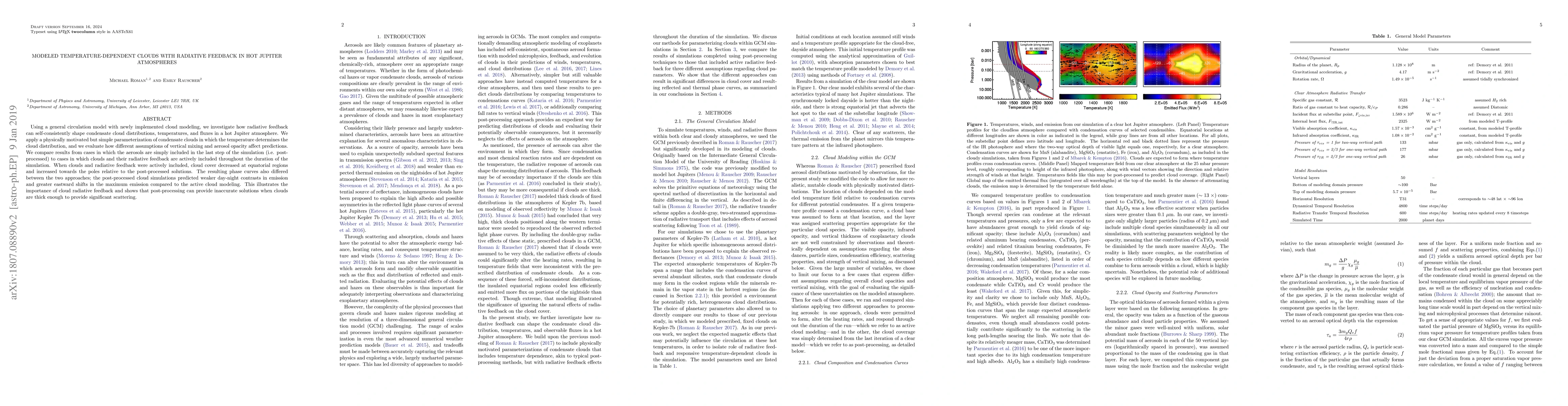 Using a general circulation model with newly implemented cloud modeling, we investigate how radiative feedback can self-consistently shape condensate cloud distributions, temperatures, and fluxes in a hot Jupiter atmosphere. We apply a physically motivated but simple parameterization of condensate clouds in which the temperature determines the cloud distribution, and we evaluate how different assumptions of vertical mixing and aerosol scattering parameters affect predictions. We compare results from cases in which the aerosols are simply included in the last step of the simulation (i.e. post-processed) to cases in which clouds and their radiative feedback are actively included throughout the duration of the simulation. When clouds and radiative feedback were actively included, cloud cover decreased at equatorial regions and increased towards the poles relative to the post-processed solutions. The resulting phase curves also differed between the two approaches; the post-processed cloud simulations predicted weaker day-night contrasts in emission and greater eastward shifts in the maximum emission compared to the active cloud modeling. This illustrates the importance of cloud radiative feedback and shows that post-processing will provide inaccurate solutions when clouds are thick enough to provide significant scattering.