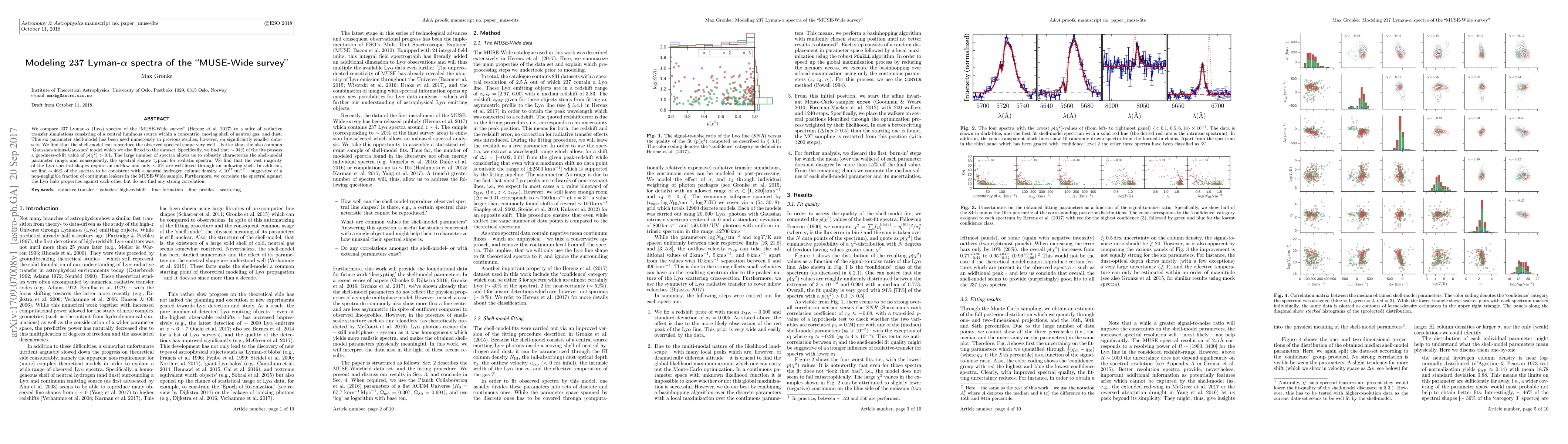 Researchers used radiative transfer simulations to model 237 Lyman-alpha spectra from the MUSE-Wide survey, finding that a shell-model can reproduce the observed shapes well, with most requiring an outflow and few showing inflowing shells.