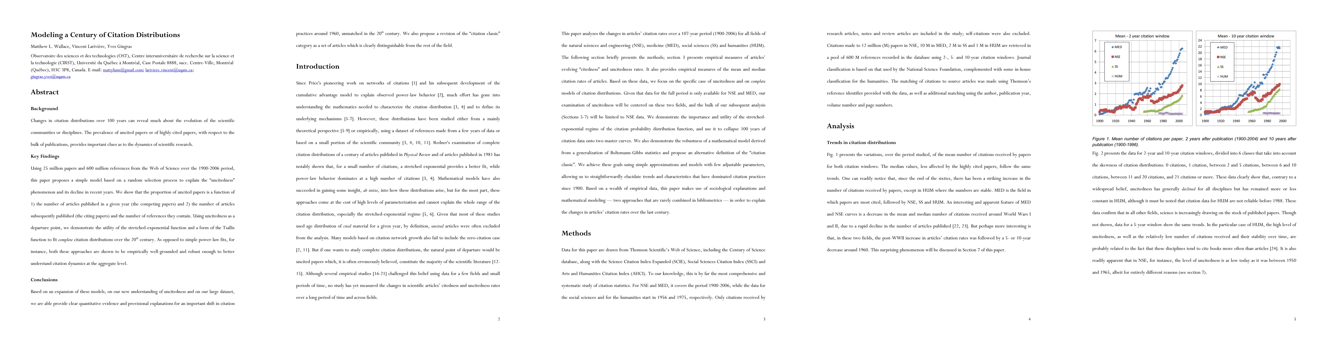 This research models citation patterns over 100 years, finding uncited papers' decline tied to publication volume and references in citing papers. It introduces stretched-exponential and Tsallis functions for fitting citation distributions, offering insights into shifts in citation practices around 1960 and suggesting a redefined 'citation classic' category.