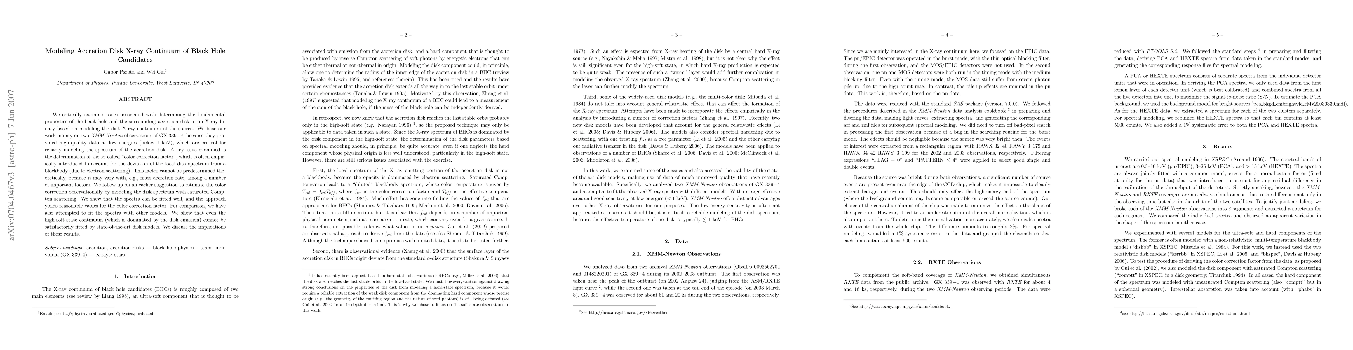 We critically examine issues associated with determining the fundamental properties of the black hole and the surrounding accretion disk in an X-ray binary based on modeling the disk X-ray continuum of the source. We base our work mainly on two XMM-Newton observations of GX 339-4, because they provided high-quality data at low energies (below 1 keV) which are critical for reliably modeling the spectrum of the accretion disk. A key issue examined is the determination of the so-called "color correction factor", which is often empirically introduced to account for the deviation of the local disk spectrum from a blackbody (due to electron scattering). This factor cannot be pre-determined theoretically because it may vary with, e.g., mass accretion rate, among a number of important factors. We follow up on an earlier suggestion to estimate the color correction observationally by modeling the disk spectrum with saturated Compton scattering. We show that the spectra can be fitted well and the approach yields reasonable values for the color correction factor. For comparison, we have also attempted to fit the spectra with other models. We show that even the high-soft-state continuum (which is dominated by the disk emission) cannot be satisfactorily fitted by state-of-the-art disk models. We discuss the implication of the results.