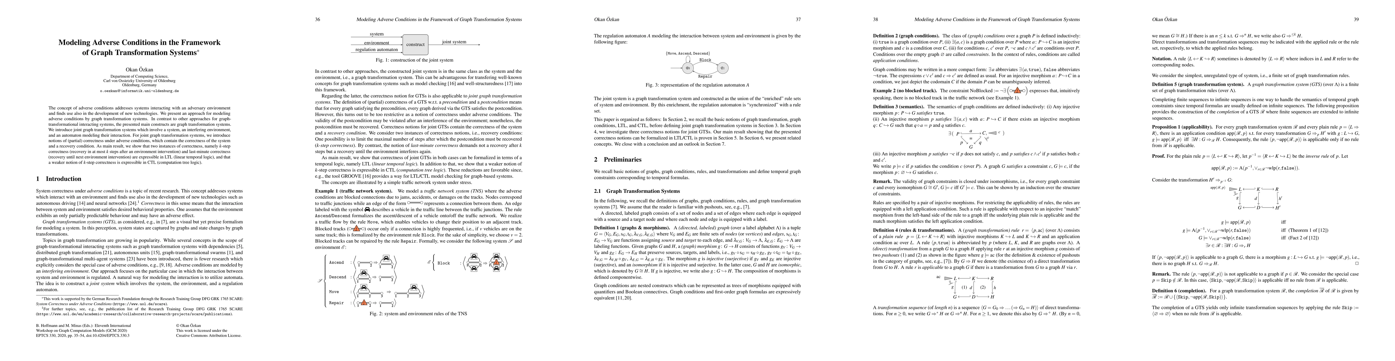 This paper proposes a novel graph transformation system to model adverse conditions in interactive systems, introducing joint graph transformation systems that incorporate a system, an adversarial environment, and a recovery automaton. It demonstrates that certain correctness notions under adverse conditions, such as k-step and last-minute correctness, can be expressed in linear temporal logic (LTL) and computation tree logic (CTL).
