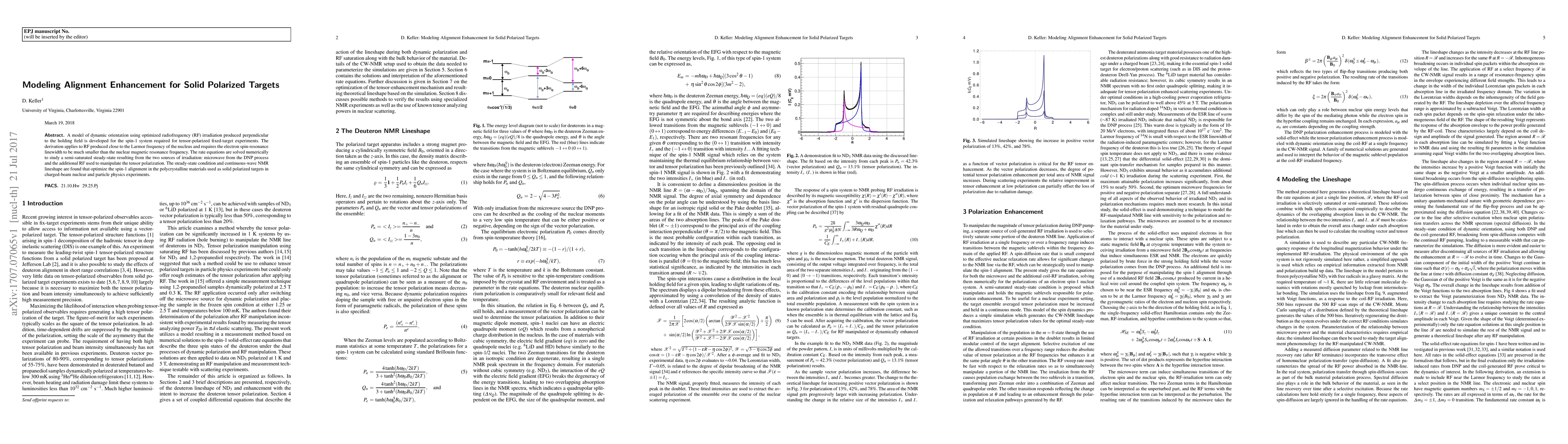 A model of dynamic orientation using optimized radiofrequency (RF) irradiation produced perpendicular to the holding field is developed for the spin-1 system required for tensor-polarized fixed-target experiments. The derivation applies to RF produced close to the Larmor frequency of the nucleus and requires the electron spin-resonance linewidth to be much smaller than the nuclear magnetic resonance frequency. The rate equations are solved numerically to study a semi-saturated steady-state resulting from the two sources of irradiation: microwave from the DNP process and the additional RF used to manipulate the tensor polarization. The steady-state condition and continuous-wave NMR lineshape are found that optimize the spin-1 alignment in the polycrystalline materials used as solid polarized targets in charged-beam nuclear and particle physics experiments.