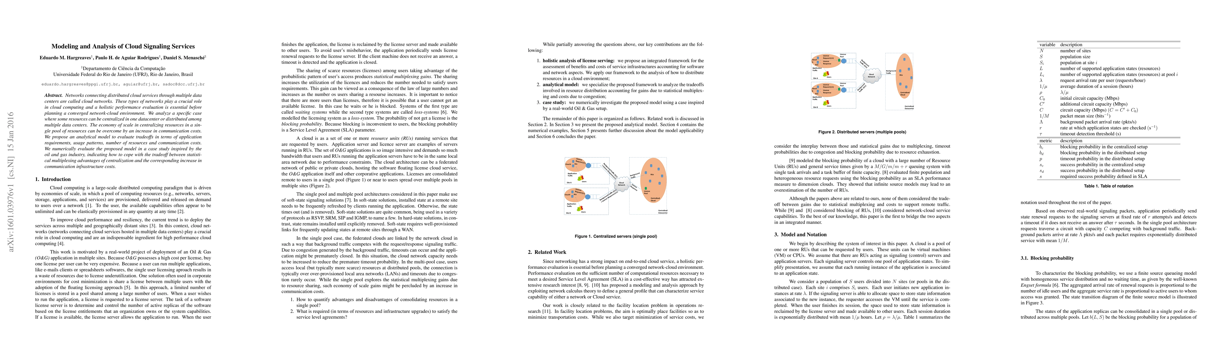 Networks connecting distributed cloud services through multiple data centers are called cloud networks. These types of networks play a crucial role in cloud computing and a holistic performance evaluation is essential before planning a converged network-cloud environment. We analyze a specific case where some resources can be centralized in one datacenter or distributed among multiple data centers. The economy of scale in centralizing resources in a sin- gle pool of resources can be overcome by an increase in communication costs. We propose an analytical model to evaluate tradeoffs in terms of application requirements, usage patterns, number of resources and communication costs. We numerically evaluate the proposed model in a case study inspired by the oil and gas industry, indicating how to cope with the tradeoff between statisti- cal multiplexing advantages of centralization and the corresponding increase in communication infrastructure costs.