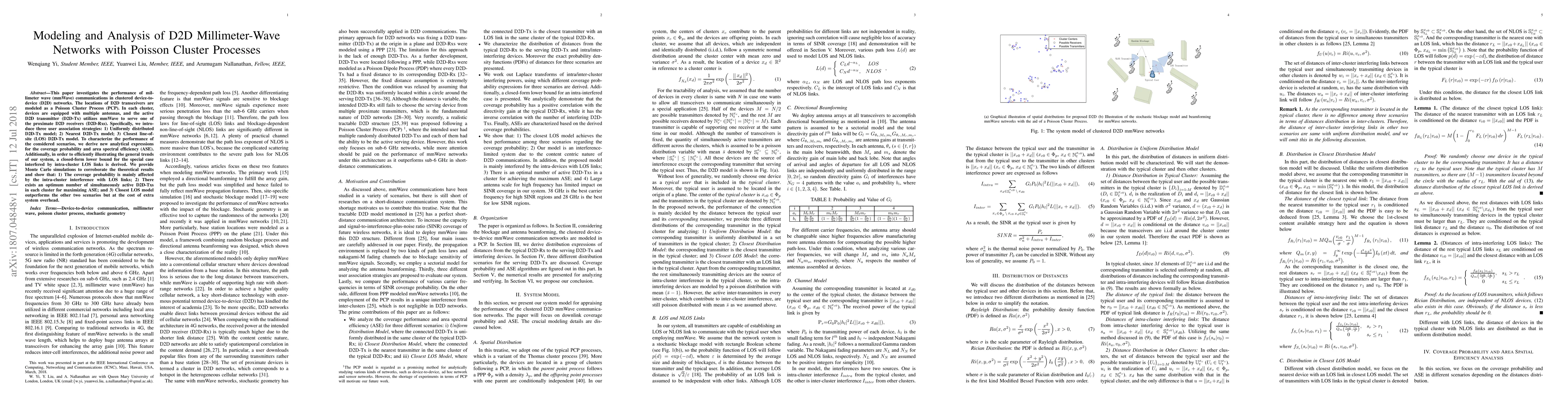 This paper models and analyzes the performance of millimeter-wave D2D networks using Poisson Cluster Processes, introducing three user association strategies. It derives analytical expressions for coverage probability and area spectral efficiency, showing that the Closest LOS model maximizes efficiency but incurs higher overhead.