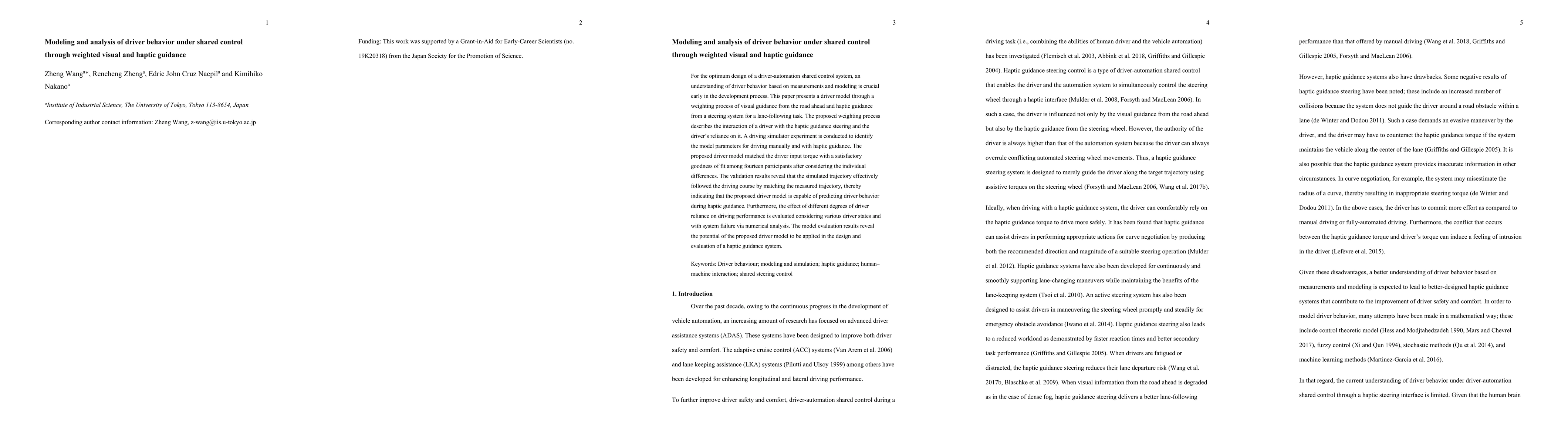 This paper develops a driver model that weighs visual and haptic guidance for shared control in automated driving, validated through a driving simulator experiment. The model accurately predicts driver behavior under different reliance levels on haptic guidance, demonstrating its potential for designing and evaluating such systems.