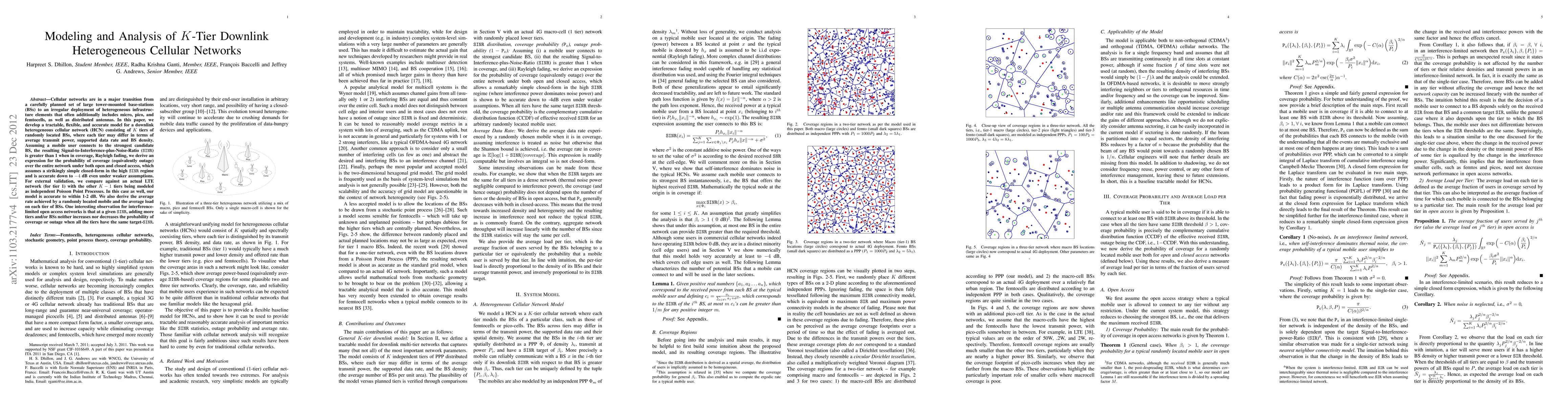 This paper develops a model for K-tier downlink heterogeneous cellular networks, analyzing the probability of coverage and average data rate under both open and closed access. The model accurately predicts network performance, validated against an actual LTE network, and reveals that adding more tiers does not affect coverage probability when all tiers have the same target SINR.