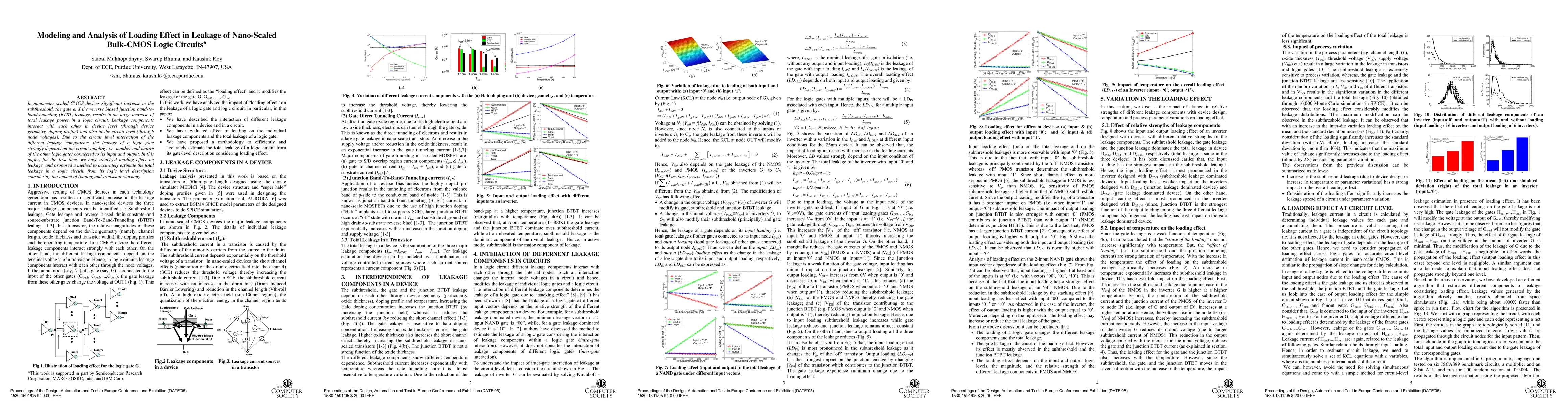In nanometer scaled CMOS devices significant increase in the subthreshold, the gate and the reverse biased junction band-to-band-tunneling (BTBT) leakage, results in the large increase of total leakage power in a logic circuit. Leakage components interact with each other in device level (through device geometry, doping profile) and also in the circuit level (through node voltages). Due to the circuit level interaction of the different leakage components, the leakage of a logic gate strongly depends on the circuit topology i.e. number and nature of the other logic gates connected to its input and output. In this paper, for the first time, we have analyzed loading effect on leakage and proposed a method to accurately estimate the total leakage in a logic circuit, from its logic level description considering the impact of loading and transistor stacking.
