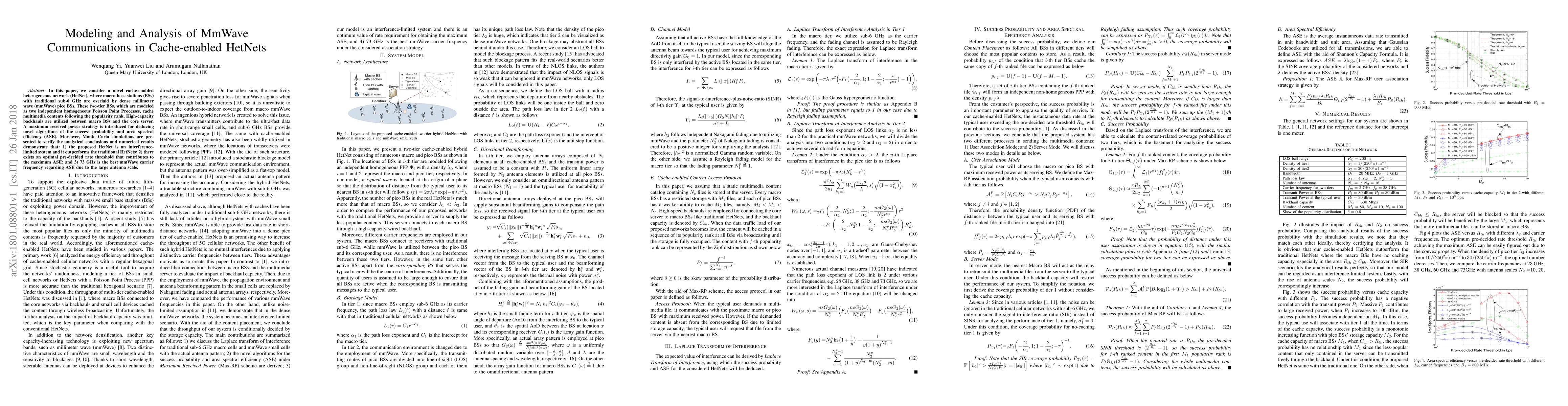 This paper models and analyzes a cache-enabled heterogeneous network with macro and mmWave pico base stations, showing that it outperforms traditional HetNets and identifies an optimal frequency for maximum area spectral efficiency. Simulation results confirm analytical findings and highlight an optimal pre-decided rate threshold for peak performance.