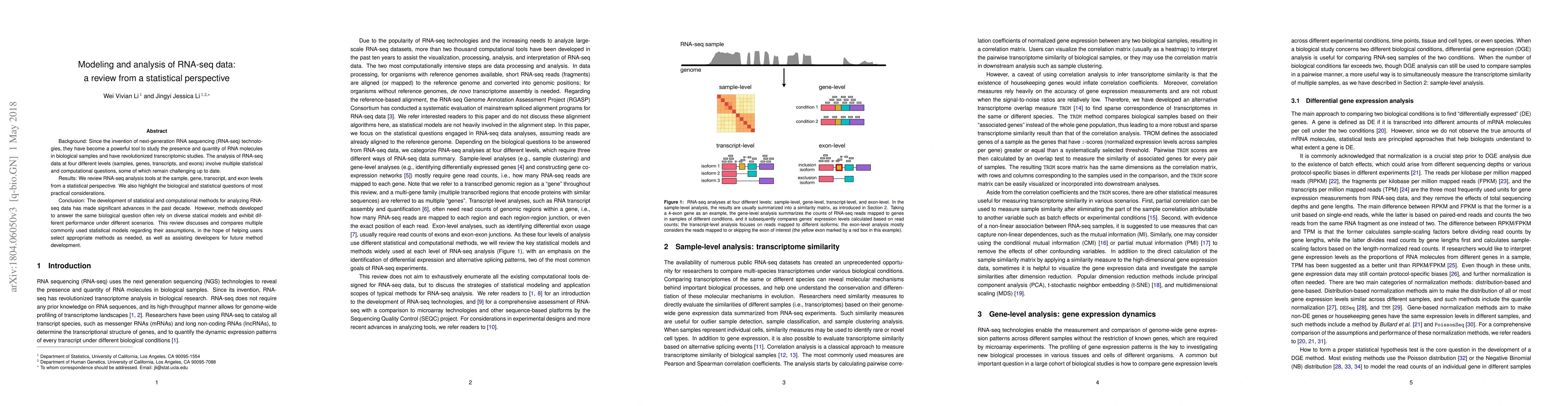 The paper provides a comprehensive review of statistical methods for RNA-seq data analysis from a sample, gene, transcript, and exon level perspective, comparing different statistical models and their assumptions.