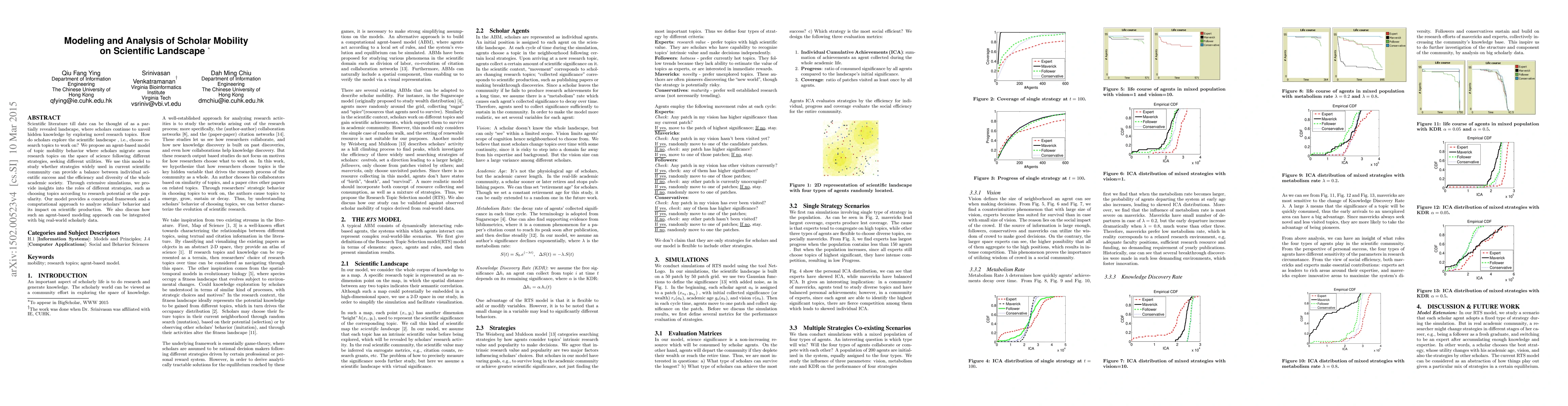 This research introduces an agent-based model to simulate scholar mobility across research topics, analyzing strategies for balancing individual success and societal efficiency. It offers insights into topic-choosing behaviors and suggests the model can be combined with real-world scholarly data for further analysis.