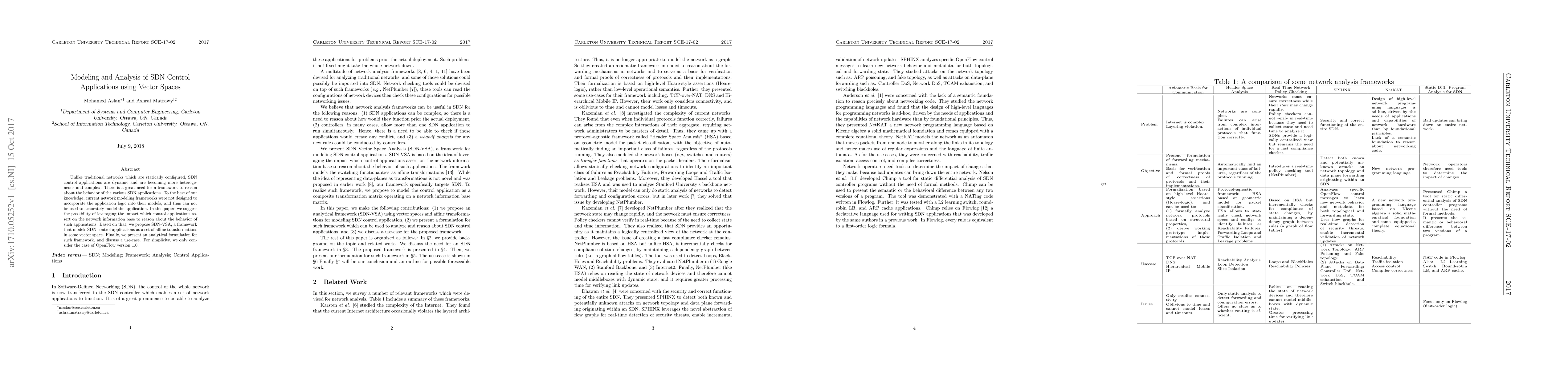 Unlike traditional networks which are statically configured, SDN control applications are dynamic and are becoming more heterogeneous and complex. There is a great need for a framework to reason about the behavior of the various SDN applications. To the best of our knowledge, current network modeling frameworks were not designed to incorporate the application logic into their models, and thus can not be used to accurately model the application. In this paper, we suggest the possibility of leveraging the impact which control applications assert on the network information base to reason about the behavior of such applications. Based on that, we propose SDN-VSA, a framework that models SDN control applications as a set of affine transformations in some vector space. Finally, we present an analytical formulation for such framework, and discuss a use-case. For simplicity, we only consider the case of OpenFlow version 1.0.