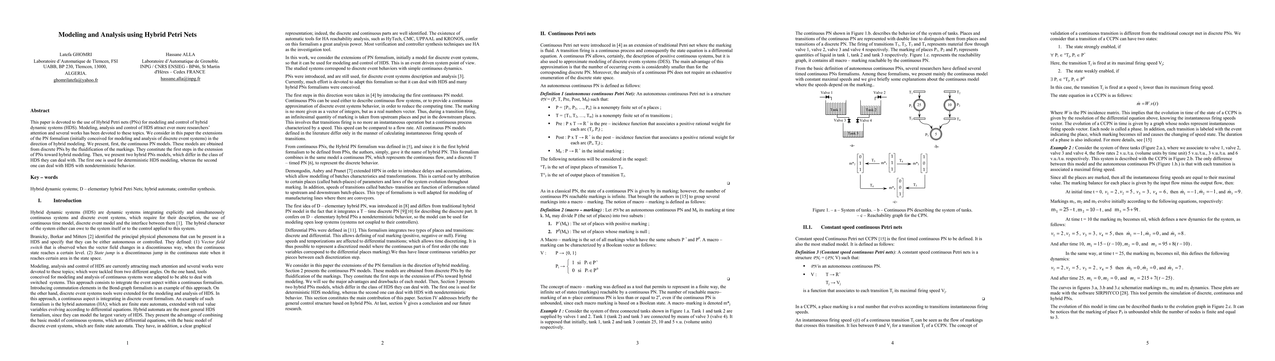 This paper extends Petri nets to hybrid dynamic systems (HDS) by introducing continuous PN models and two hybrid PN models for deterministic and nondeterministic HDS, respectively. The study aims to model, analyze, and control hybrid systems through these extended formalisms.