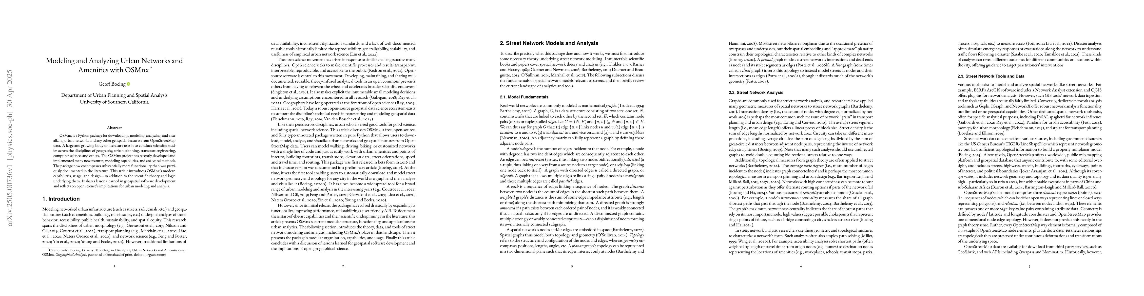 This paper introduces OSMnx's modern capabilities for modeling urban networks and amenities, showcasing its expanded functionality and design improvements.