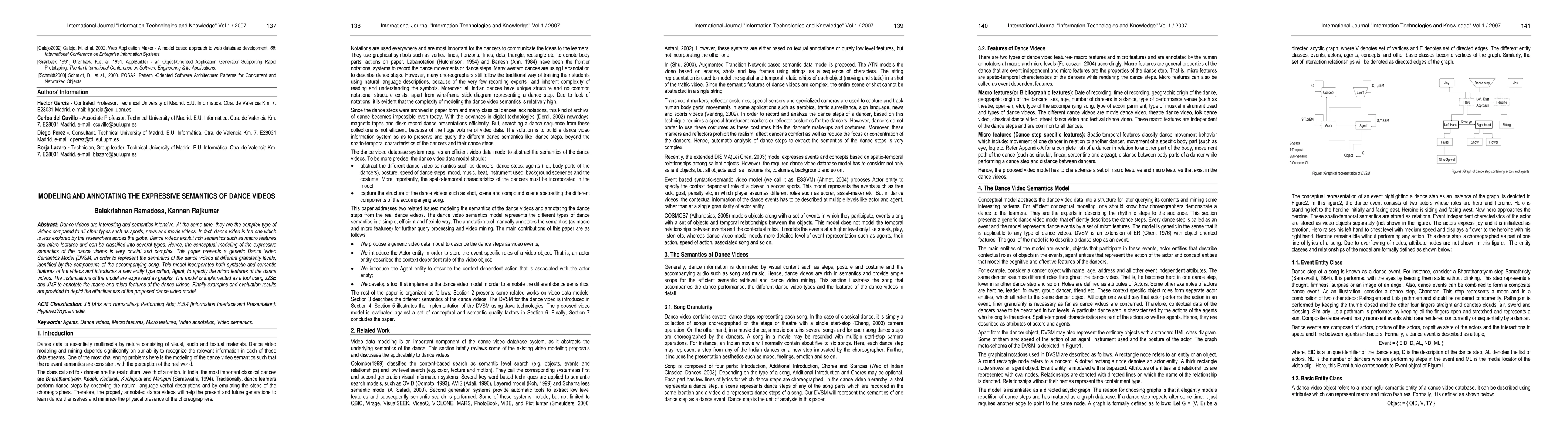 This paper introduces a Dance Video Semantics Model (DVSM) to represent the complex semantics of dance videos, incorporating both syntactic and semantic features. The model includes a new entity type, Agent, to specify micro features and is implemented as a tool for annotating dance videos, with evaluation results demonstrating its effectiveness.