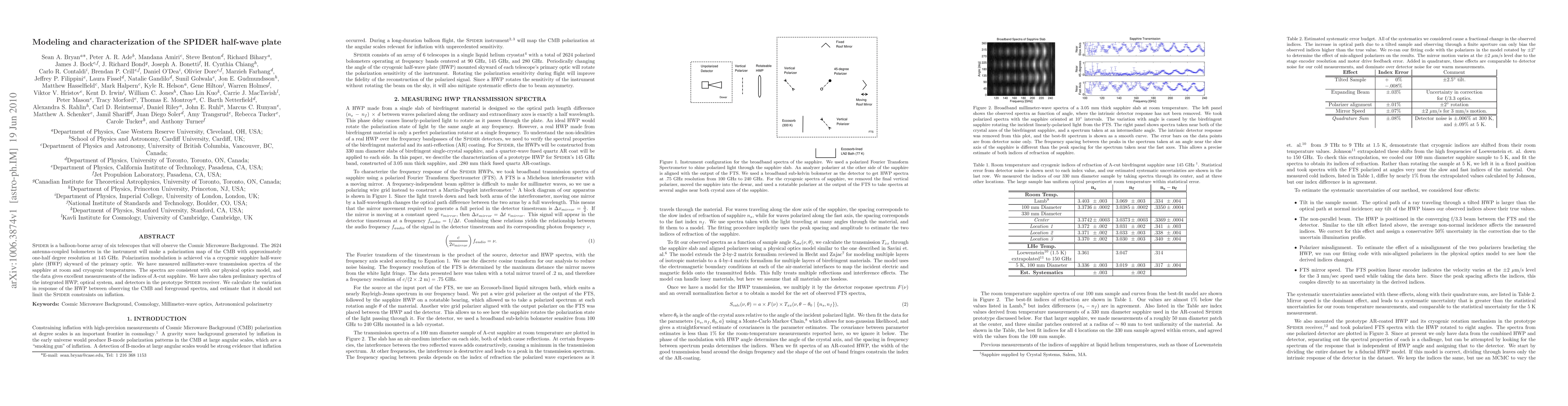 This paper details the modeling and characterization of the SPIDER cryogenic sapphire half-wave plate used for polarization mapping of the Cosmic Microwave Background. The study measures millimeter-wave transmission spectra and validates the physical optics model, ensuring the half-wave plate's response does not limit the experiment's constraints on inflation.