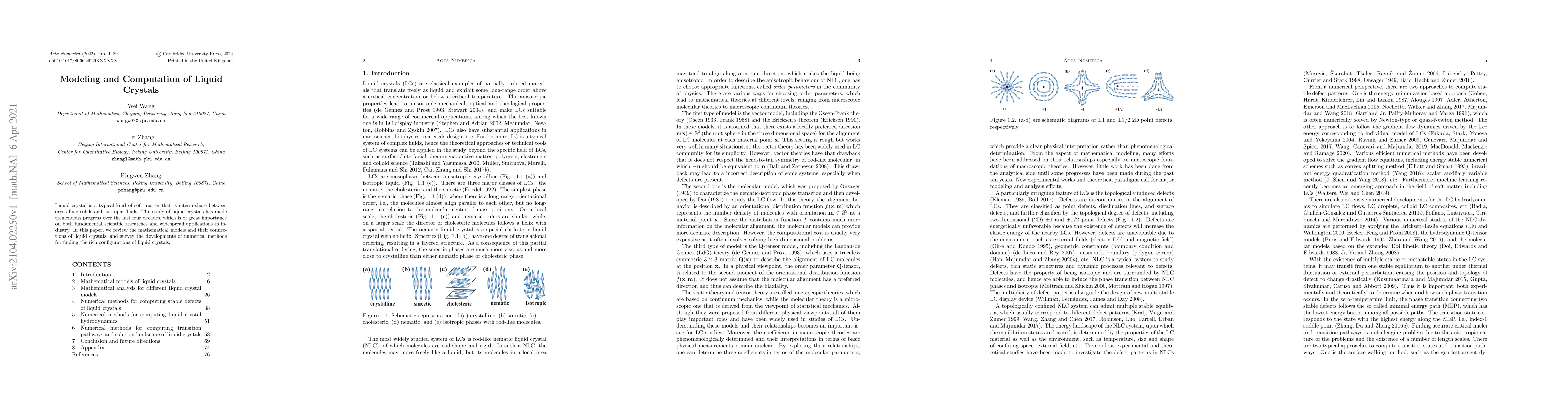 Liquid crystal is a typical kind of soft matter that is intermediate between crystalline solids and isotropic fluids. The study of liquid crystals has made tremendous progress over the last four decades, which is of great importance on both fundamental scientific researches and widespread applications in industry. In this paper, we review the mathematical models and their connections of liquid crystals, and survey the developments of numerical methods for finding the rich configurations of liquid crystals.