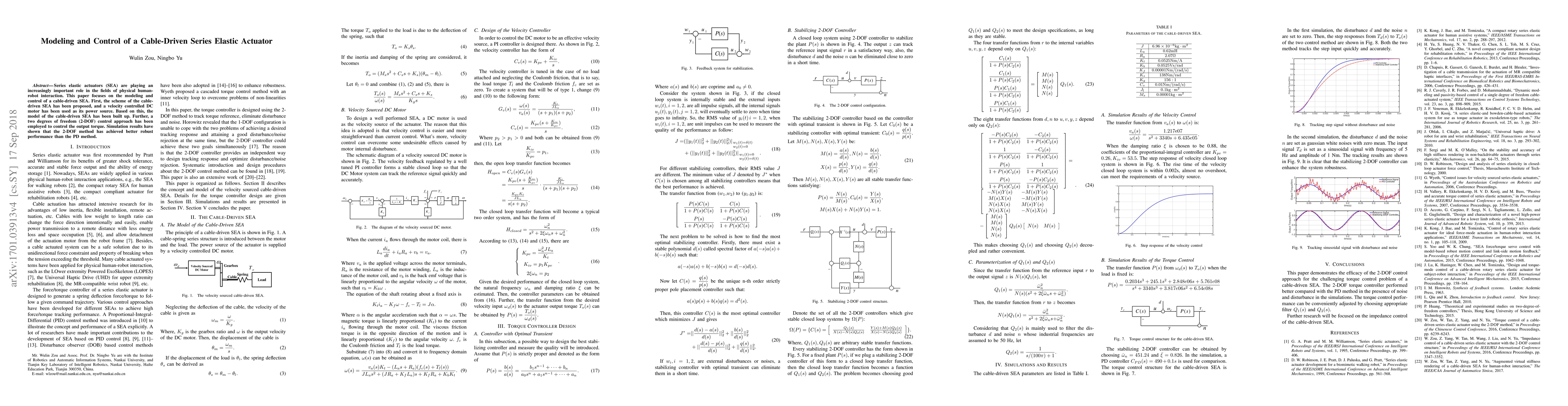 This paper proposes a modeling and control strategy for a cable-driven series elastic actuator (SEA) used in human-robot interaction. A two degrees of freedom (2-DOF) control approach demonstrates superior robust performance compared to the PD method, as shown in simulation results.