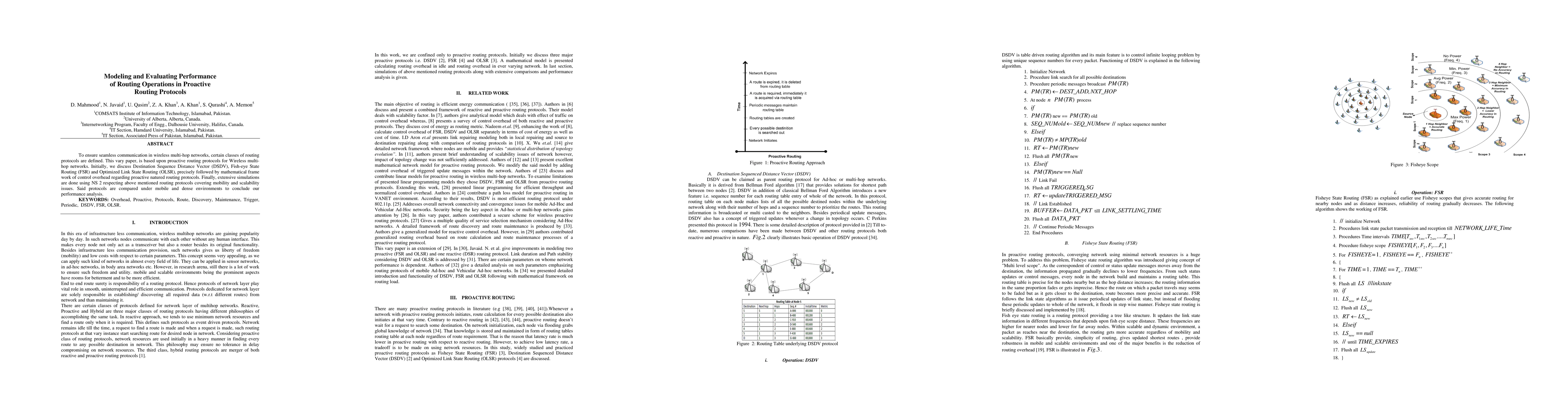 This paper evaluates the performance of proactive routing protocols, specifically DSDV, FSR, and OLSR, in wireless multi-hop networks. It concludes with extensive simulations using NS 2 to compare these protocols under mobility and scalability conditions.