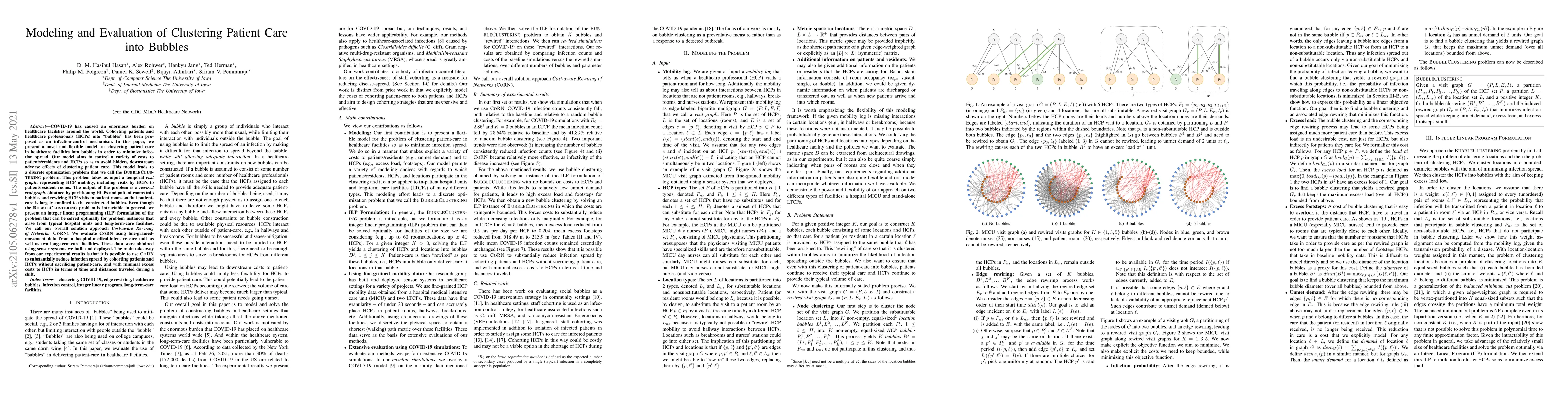 COVID-19 has caused an enormous burden on healthcare facilities around the world. Cohorting patients and healthcare professionals (HCPs) into "bubbles" has been proposed as an infection-control mechanism. In this paper, we present a novel and flexible model for clustering patient care in healthcare facilities into bubbles in order to minimize infection spread. Our model aims to control a variety of costs to patients/residents and HCPs so as to avoid hidden, downstream adverse effects of clustering patient care. This model leads to a discrete optimization problem that we call the BubbleClustering problem. This problem takes as input a temporal visit graph, representing HCP mobility, including visits by HCPs to patient/resident rooms. The output of the problem is a rewired visit graph, obtained by partitioning HCPs and patient rooms into bubbles and rewiring HCP visits to patient rooms so that patient-care is largely confined to the constructed bubbles. Even though the BubbleClustering problem is intractable in general, we present an integer linear programming (ILP) formulation of the problem that can be solved optimally for problem instances that arise from typical hospital units and long-term-care facilities. We call our overall solution approach Cost-aware Rewiring of Networks (CoRN). We evaluate CoRN using fine-grained-movement data from a hospital-medical-intensive-care unit as well as two long-term-care facilities. These data were obtained using sensor systems we built and deployed. The main takeaway from our experimental results is that it is possible to use CoRN to substantially reduce infection spread by cohorting patients and HCPs without sacrificing patient-care, and with minimal excess costs to HCPs in terms of time and distances traveled during a shift.