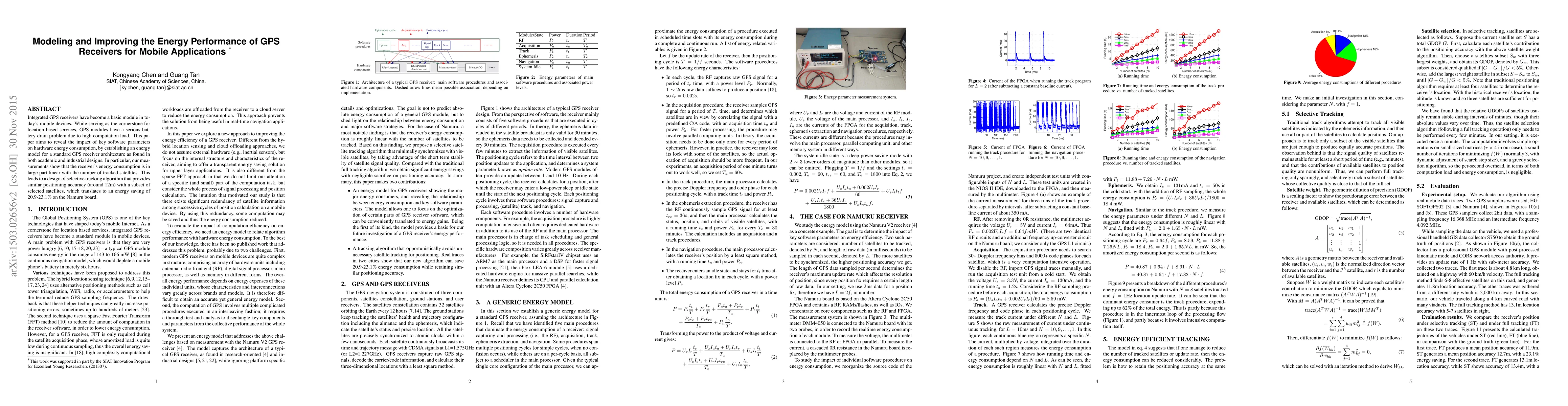 A study found that GPS receiver energy consumption is mostly linear with tracked satellites, leading to a 20.9-23.1% energy saving by selectively tracking a subset of satellites for similar positioning accuracy.